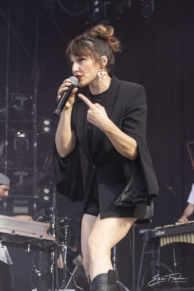 18:30 Caravan Palace Plus besoin de les présenter, ce n’est pas la première fois qui ‘ils viennent sur la plaine de l’ASS, et chaque fois, le groupe enchante leur public et le public de Paléo avec leur énergie sur scène. Leur nouvel album est sorti cette année et s’intitule « Gangbusters Melody Club ». Il contient 12 titres, avec une tournée qui était inévitable, qui passe par la France, la Suisse, l’Allemagne et l’Angleterre. Le groupe est composé de six membres, réputé pour son ambiance énergique et festive, il nous le prouve encore aujourd’hui en mettant le feu sur la Grande Scène. Il mélange des éléments de jazz manouche, de swing et de musique électronique, créant un climat à la fois nostalgique et contemporain. Un moment dans le passé des années 40. Avec eux, c’est vivre une soirée pleine de vie et de bonnes vibrations, où la musique et la danse sont à l’honneur. Avec la chaleur de ce soir, la chanteuse a arrosé d’eau le public et les photographes avec sa gourde, un geste bien apprécié par le public.