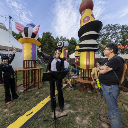 Fabulations et billevesées, deux femmes qui présente des œuvres d’arts qui sont gonflées. Un spectacle très sympa.