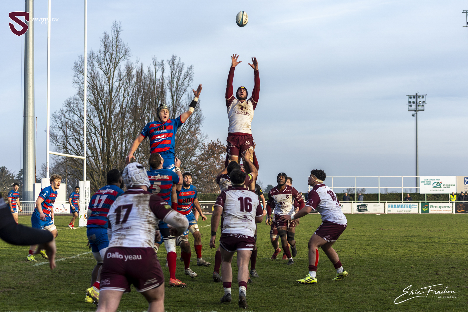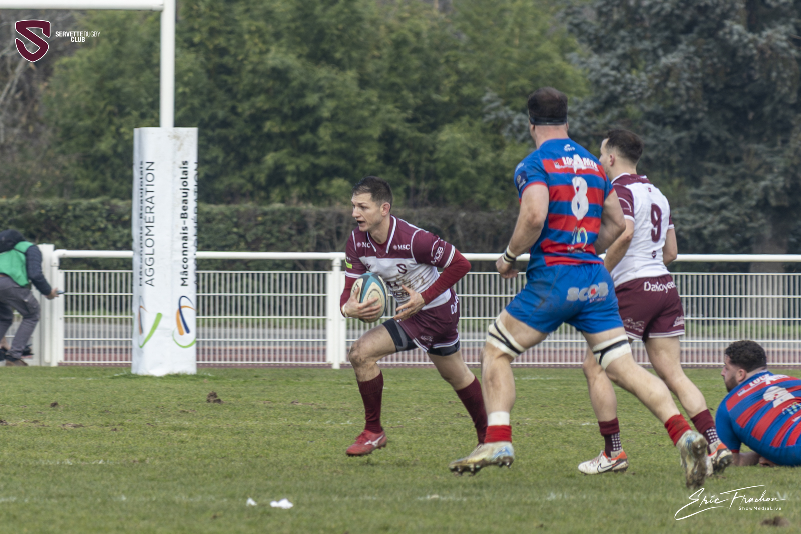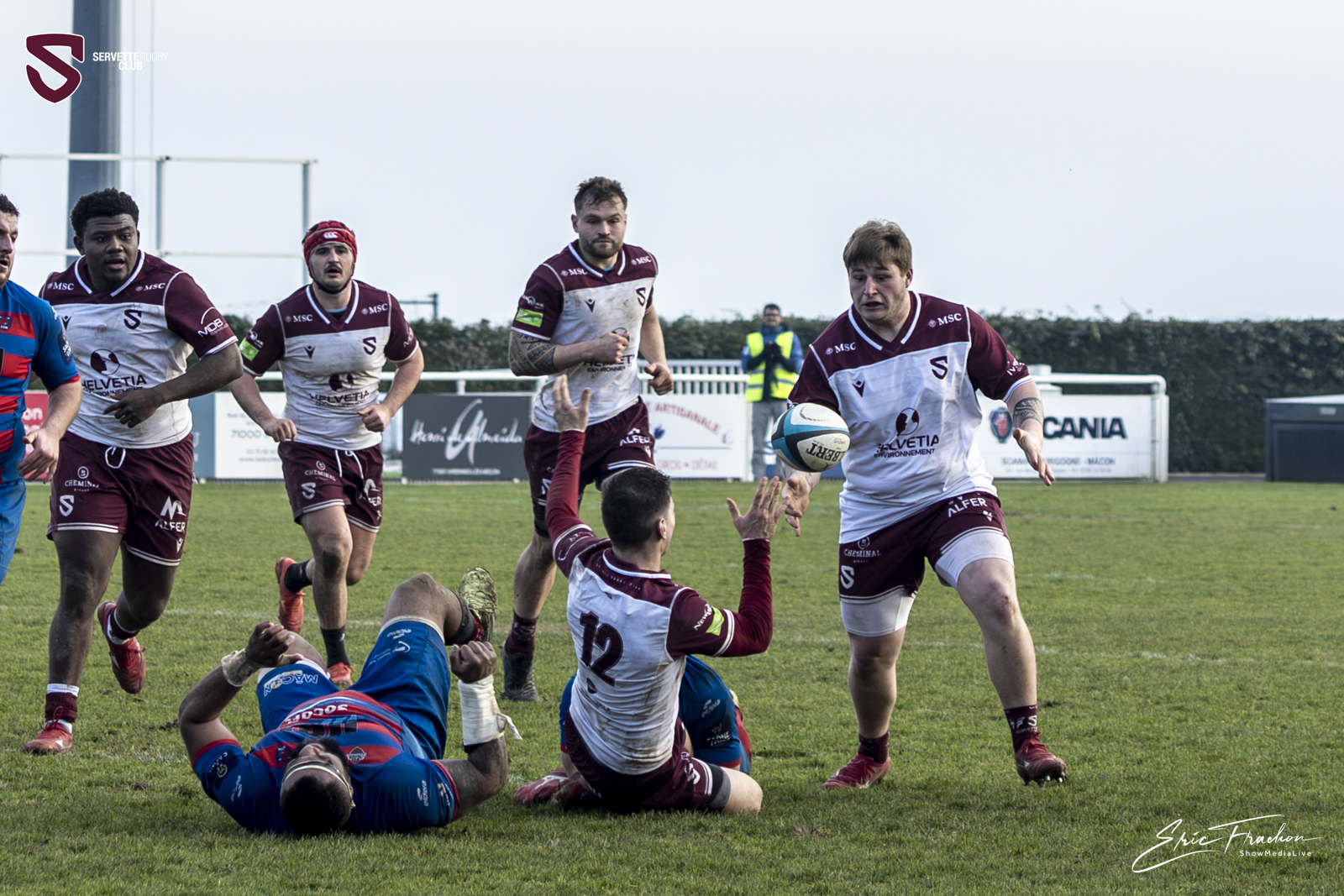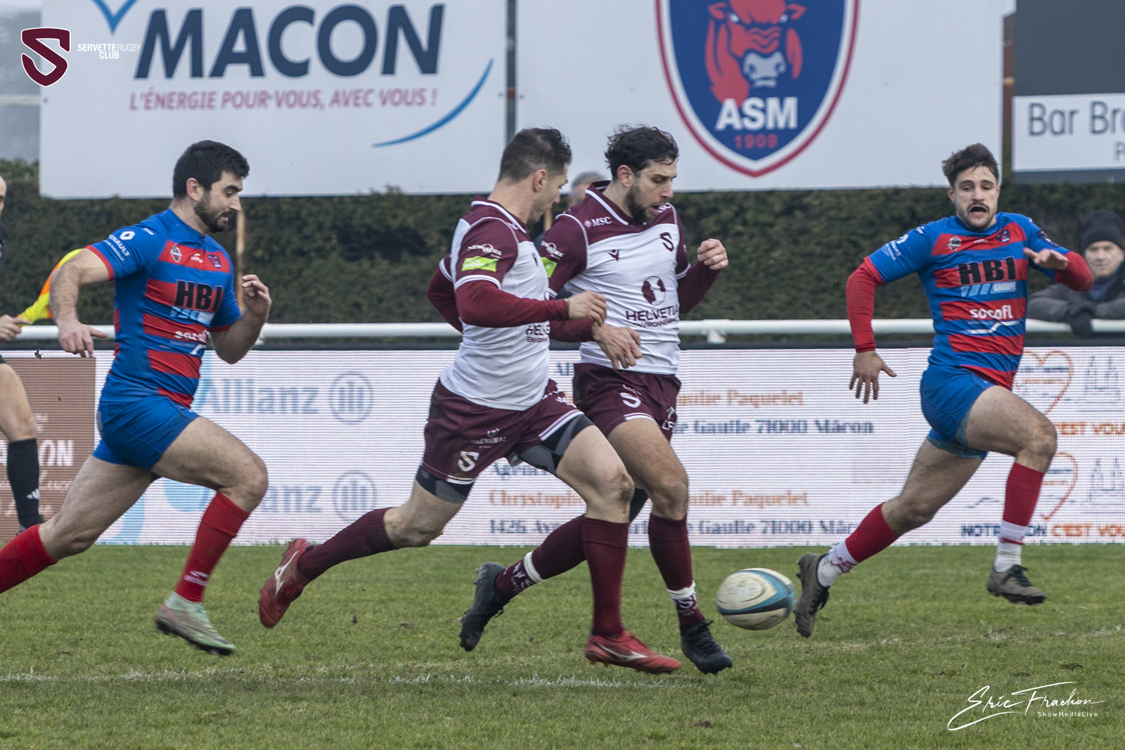Mâcon profite de ce temps fort pour reprendre l’avantage grâce à une nouvelle pénalité de Lavaux (64e), avant qu’E. Canivet ne s’offre un doublé avec un essai à la 73e minute. Malgré une résistance courageuse jusqu’au bout, le Servette ne parvient pas à inverser la tendance.