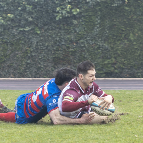 Despite these difficulties, Servette made a perfect start to the match. As early as the 2nd minute, M. Laforgue crossed the line for the opening try, setting the tone and showing that Servette had come to compete. Well organised and disciplined, the visitors remained efficient in front of goal, with T. Bouyxou adding two penalties in the 29th and 37th minutes.