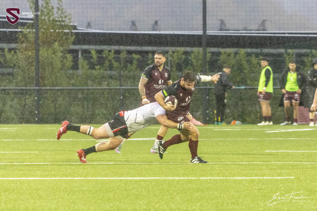 Et voici le match de la Première. Une pénalité à la troisième minute pour le Servette, transformée, score 3-0 Quatorzième minute, une pénalité pour Rumilly,…