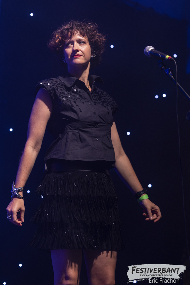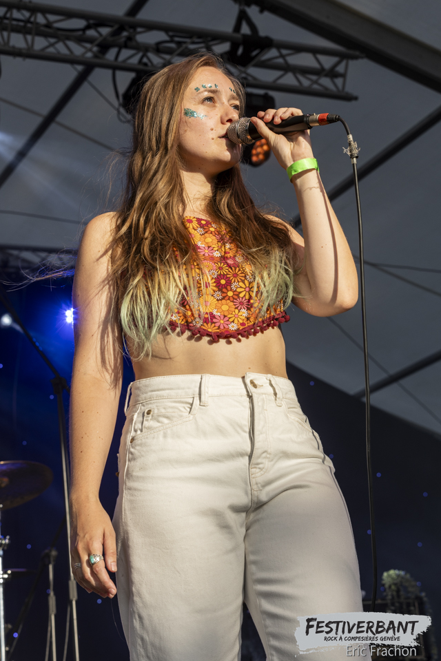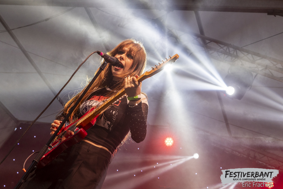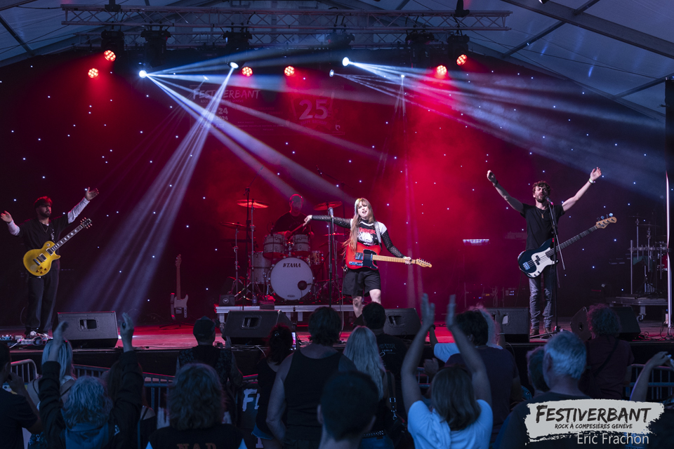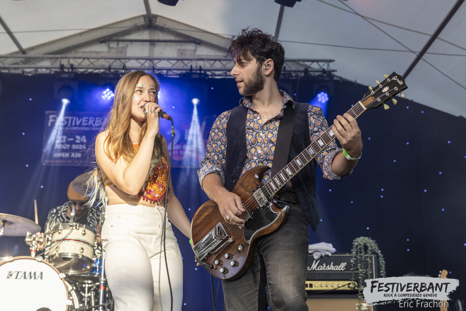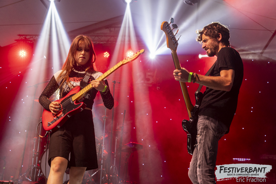 20:15 Kim Melville, tombée dedans depuis toute petite, je parle du monde musical bien sûr et non de la potion magique d’Obélix. Une multi-musicienne entre piano et guitare. Son cœur balance pour le rock et la guitare, dont elle a fait le premier choix. Elle sort de l’école l’IMEP-Paris Collège of Music. Elle joue, compose, c’est une artiste complète à un si jeune âge. Ce soir sur scène, c’est une jeune artiste à l’aise que nous allons découvrir, on à envie de la prendre dans ces bras et de lui faire un gros câlin. Mais vous n’y fiez pas, sur scène c’est une tornade, elle joue ces morceaux avec perfection, rien n’est laissé au hasard, on n’a pas fini de l’entendre, donc retenez bien son nom Kim Melville. Le public de Festiverbant a été conquis et le nombre de fans a dû augmenter sur ses réseaux sociaux.