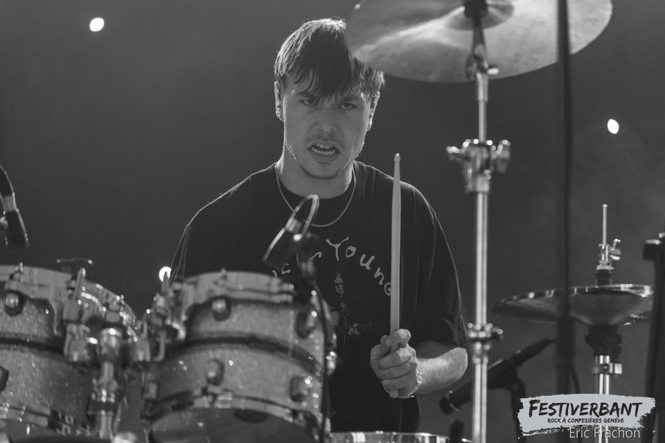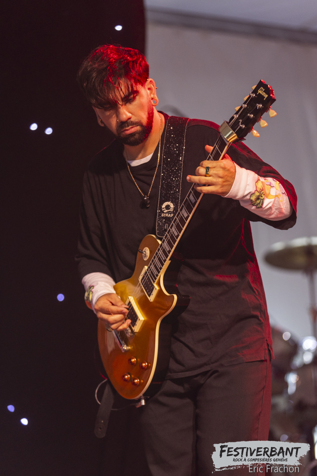 19:00 Damantra, quatre jeunes musiciens venant de Toulouse. Les gagnants du Tremplin de Guitare en scène, qui se produisent ce soir sur la scène du Festiverbant. Un EP en 2018, un album en 2019 ‘Broken’, un EP en 2020 ‘Jekyll and Hyde’ et un EP en 2023 ‘Comet’. Ce soir sur scène, ils sont là pour ouvrir la deuxième soirée de ce magnifique festival. Avec une voix et trois jeunes musiciens qui nous ont fait vibrer avec leur composition. Un super moment malgré le peu de public à cette heure-ci, qui est bien dommage pour les artistes.