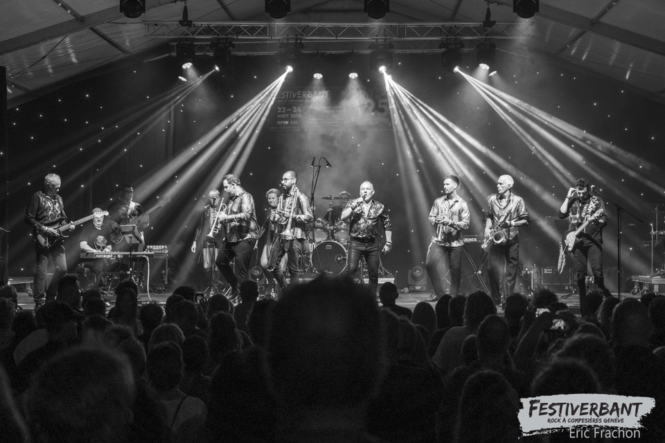 23:45 Toto Jam exerce depuis 2011, et c’est avec divers musiciens Genevois que ce projet est né. Ils ont beaucoup joué entre 2012 et 2013, après ces deux ans de tournée, une pause c’est fait ressentir et pendant deux ans, entre 2015-2016, le groupe a travaillé sur d’autre projet individuellement. Normalement, la composition de Toto Jam est de sept musiciens. Mais ce soir sur scène, ils seront six pour nous faire revivre les plus grands titres de Toto et nous permettre de finir cette soirée de ce festival en beauté. Malgré la pluie qui commence a tomber, les gens sont restés sous cette tente pour écouter le concert à l’abris.
