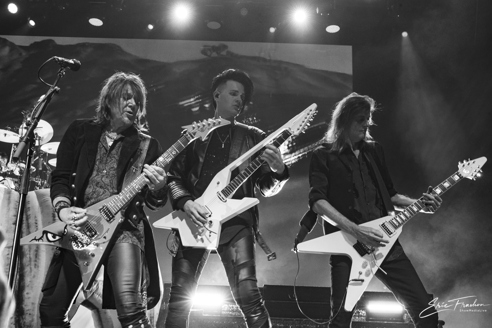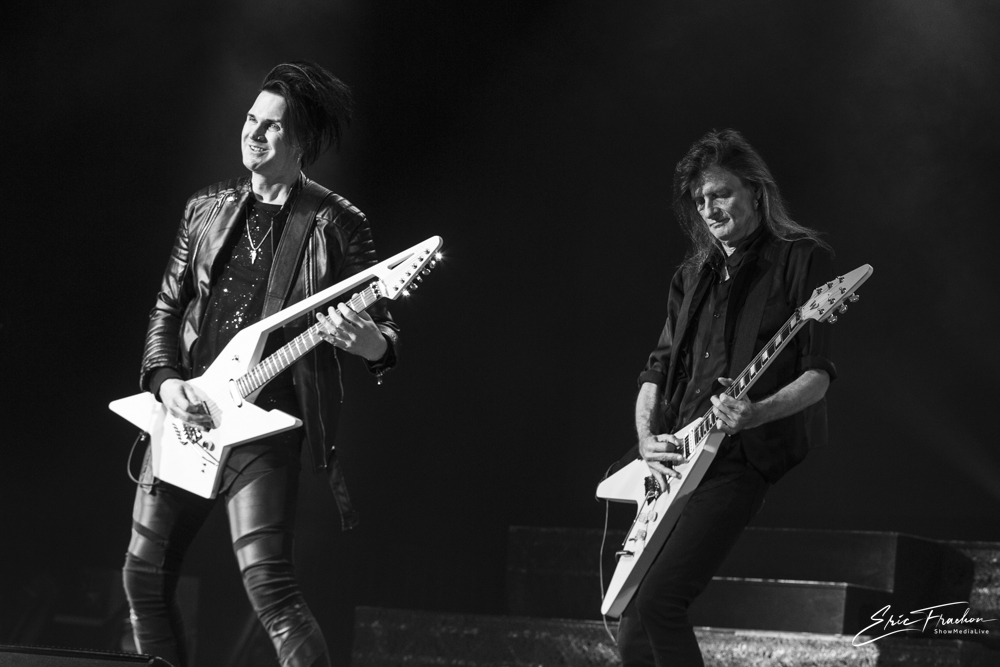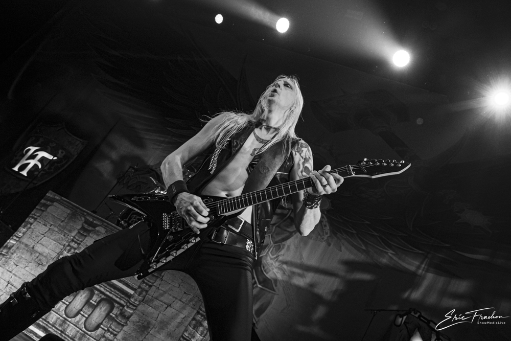 En ce mardi 13 décembre, il fallait vraiment avoir une envie folle de voir HammerFall & Helloween en concert et surtout de les immortaliser avec le premier jour de neige sur toute la Suisse. Il fallait que cela tombe aujourd’hui. Après 5 heures de route entre Gland et Zurich, oui vous m’avez bien lu, 5 heures de route en moyenne à 30km sur l’autoroute et heureusement pas d’accident sur le trajet. Mais vous n’êtes pas là pour lire mes péripéties, mais pour voir les photos du concert et lire un petit article sur ces deux groupes et cette soirée magnifique. Avec 2’600 personnes dans la salle du The Hall à Dübendorf avec le premier concert d’HammerFall, et la météo pour des Suédois devait être parfaite. A leur actif, ils ont 12 albums studio, et c’est en tournée avec Helloween qui font un passage sur la Suisse. Ce n’est pas comme on a l’habitude de voir avec une première partie, ce sont vraiment deux concerts en un avec ces deux groupes, un régal pour nous. Un très bon show qui nous a bien réchauffé pendant ces morceaux, comme Brotherhood, Hammer of dawn, Glory to the Brave, et encore beaucoup d’autres qui retrace bien leur magnifique carrière. Voilà, c’est 21 heures et la lumière s’éteint et la vidéo qui lance Helloween commence, c’est parti pour un concert incroyable avec une ambiance géniale qui nous fait oublier le trajet, avec une set liste de 13 morceaux. Le concert commence sur Skyfall, un régal pour nous, photographes, car elle dure environ 15 minutes. Comme nous avons le droit qu’à la première chanson, cela tombe bien. Helloween que l’on ne présente plus avec leurs 16 albums entre 1985 et 2021, 4 albums live et 5 compilations, des tournées dans le monde entier et aussi les plus grands festivals. Cette fois-ci, c’est avec la tournée UNITED FORCES TOUR 2022-2023 qui se sont arrêter en Suisse. Merci pour ce bon moment.