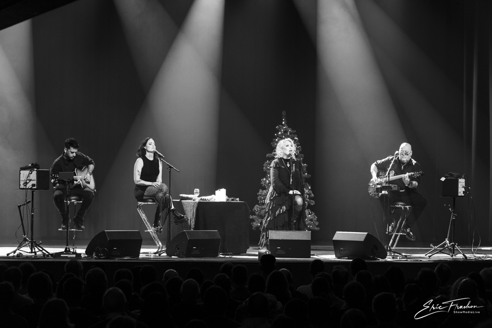 Ce soir 12 décembre, nous sommes une nouvelle fois à Zurich pour un concert dans une nouvelle salle, la Volkshaus qui est presque pleine avec environ 1000 personnes. Cette salle est vraiment magnifique est nous avons hâte que le concert commence. Les lumières s’éteignent, et voilà les musiciens de Kim Wilde qui s’installe, et nous découvrons une scène de Noël avec un sapin, une table et des bougies, des tabourets de bar, je pense que nous n’allons pas avoir un concert bien rock pour nous faire bouger, mais on peut être surpris. En attendant Kim Wilde, faisons sa connaissance. Kim Wilde à 64 ans depuis un mois, elle est Londonienne et chante depuis 1981, avec 14 albums à son actif. Voilà Kim Wilde qui arrive, tout de noir vêtu, et ce soir comme le prévois visuellement la scène, les chants de Noël sont à l’honneur. Je la trouve magnifique, bien sûr elle n’a plus 25 ans, mais je la trouve encore très charmante. Ce soir, les chants de Noël sont à l’honneur, mais le public apprécie de la voir dans cette salle intimiste avec une version unplugged de ces morceaux. C’est une très bonne soirée, surtout que l’on vient d’apprendre qu’elle revient en fin 2025 pour la tournée “Closer”, avec ses plus grands titres qui ont fait d’elle sa magnifique carrière. Vous pouvez déjà acheter vos billets sur le site de Gadget.
