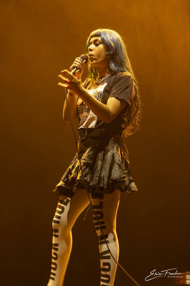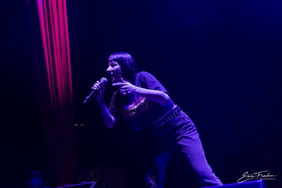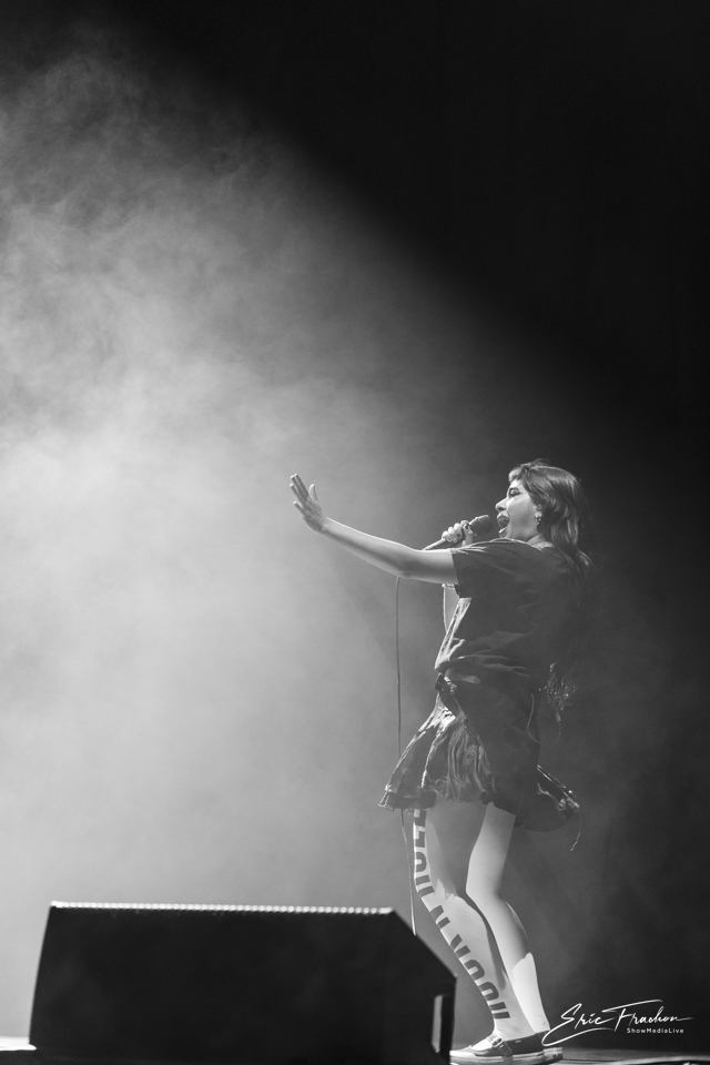 Je suppose que vous voulez en avoir encore dans les oreilles, alors on peut continuer avec le 3ème groupe, ou la troisième artiste, qui est Ecca Vendal, une jeune artiste née au Sri Lanka qui tourne depuis 10 ans environs. Elle nous emmène dans un univers très rapp, rock et aussi punk. Certain la surnomme la tornade, partout où elle passe, elle laisse des traces, et ce soir, que de belles surprises sur scène en tout cas. Son premier album nommé (Eponyme) est sorti en octobre 2017. Une deuxième pépite sur la scène, qui est aussi accompagnée de deux musiciens. Ecca Vendal a su chauffer le public de l’Hallenstdion et se faire repérer par les personnes qui la découvraient ce soir. A suivre de très près dans le futur.