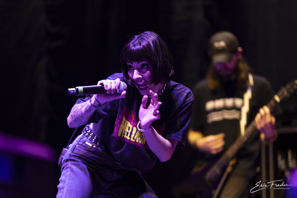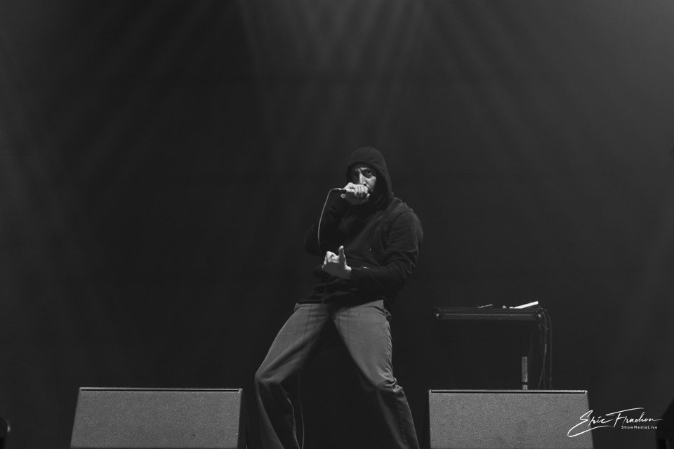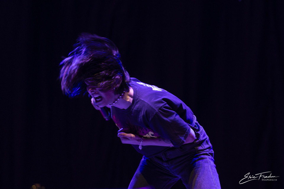 Et nous arrivons déjà au 4ème groupe de la soirée, qui est pour l’instant magique et exceptionnel. Bones With et Eddy Baker, deux rappeurs avec une tête de mort au milieu de la scène, mais pas beaucoup de lumière. Je me demande ce qu’il faisait ici en fait, lors d’un concert plutôt rock metal entouré de rappeur. Malheureusement, le concert n’as pas mis à feu la salle qui attend avec impatience la tête d’affiche.