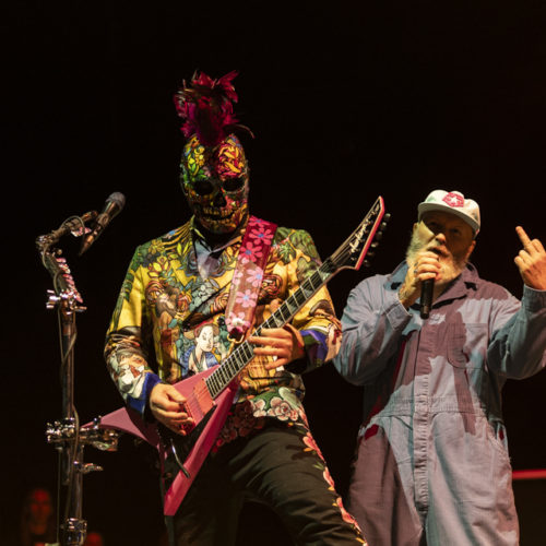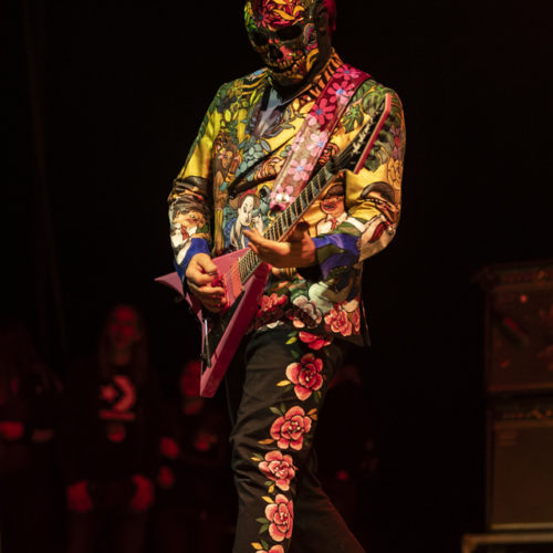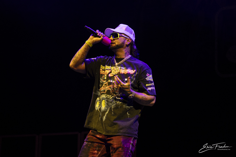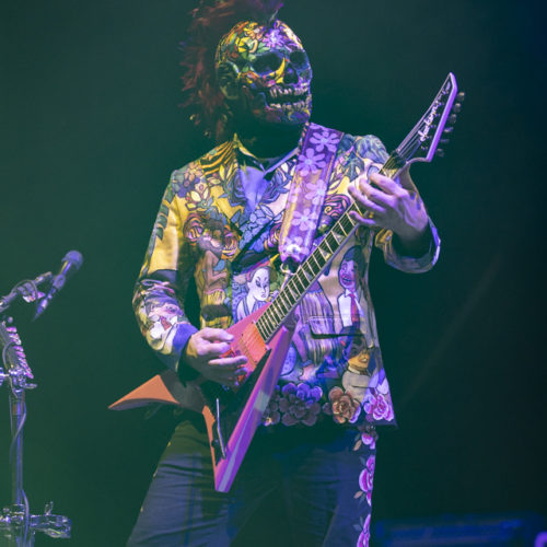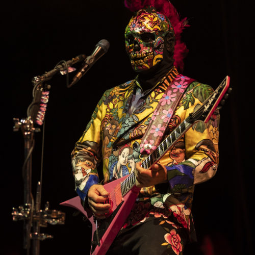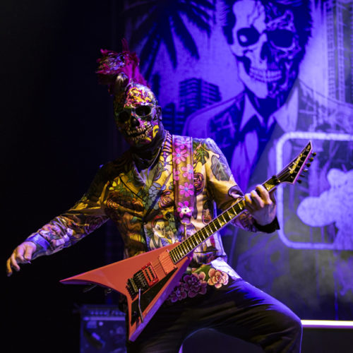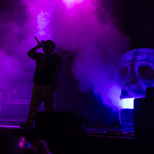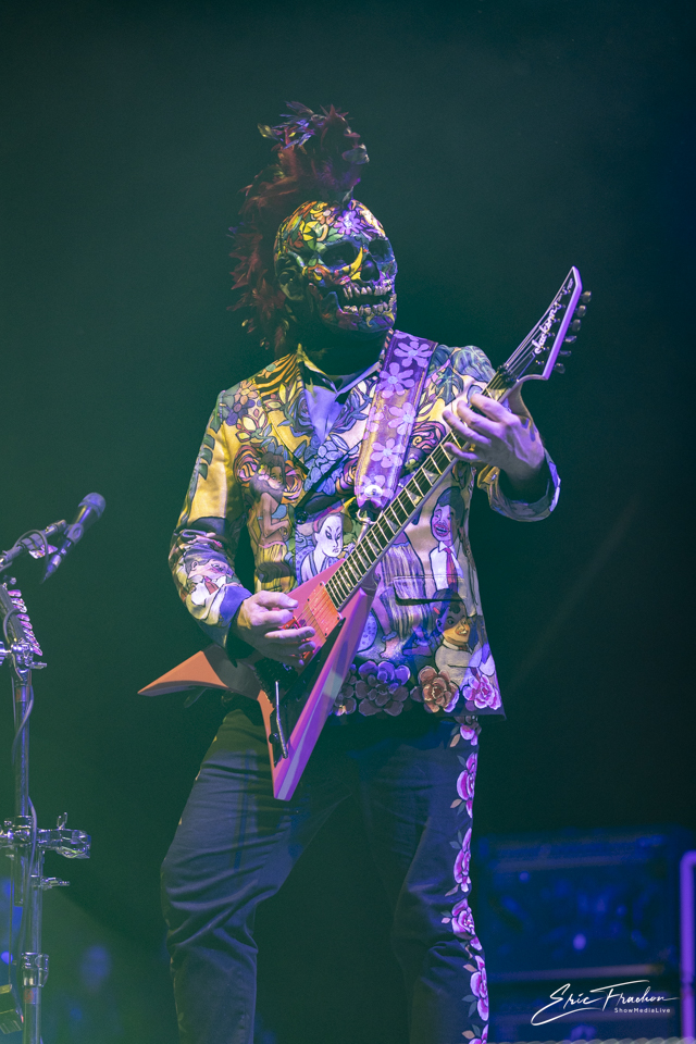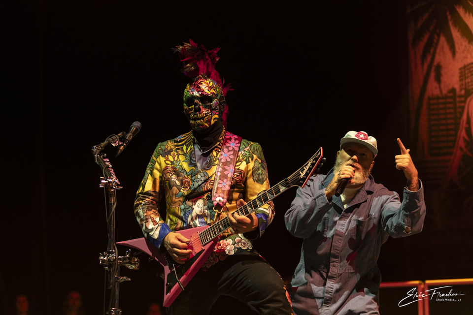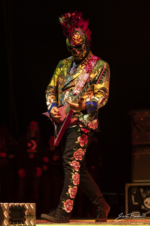Nous continuons la suite de la soirée avec N8NOFACE, un artiste qui sait tout faire, originaire de l’Arizona et qui fait de la musique dite Bizarre. Avant, il était en duo (Crimekillz), mais avec le départ de l’autre personne, il ne voulait pas s’arrêter. Donc, il a continué à jouer et à créer sous le nom de N8NOFACE. Il a une discographie qui s’étend de 2012 à 2021. Arrivé sur scène en ne l’laissant que les yeux apparaitre, le DJ a commencé son show. C’est vrai que c’est un style assez bizarre, et je n’arrive pas savoir si le public a apprécié ou pas. En tout cas, nous avons découvert un autre style ce soir.