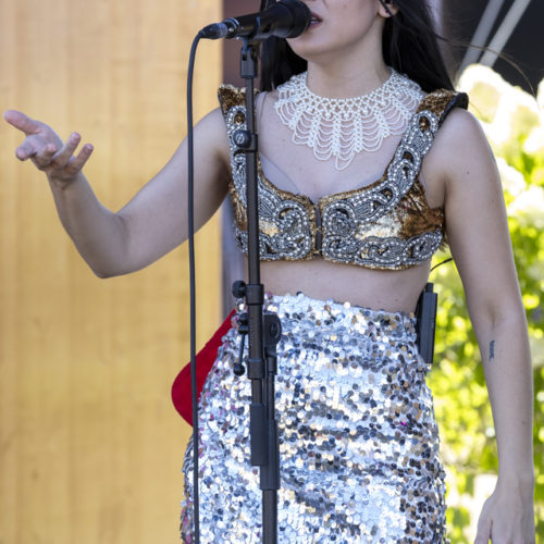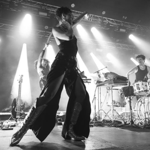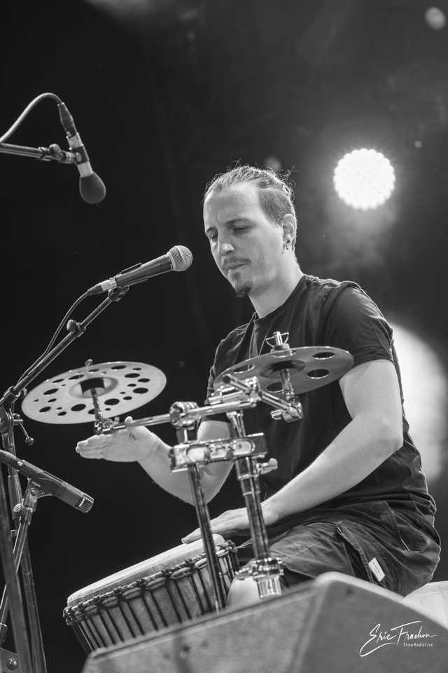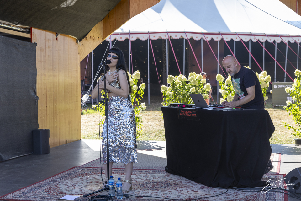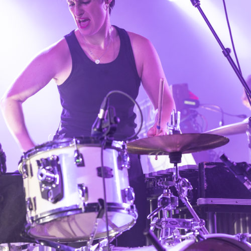 22:45 Lucie Antunes, une musicienne percussionniste, batteuse, multi-instrumentaliste française. C’est en 2013 qu’elle commence son activité dans le monde de la musique. Elle est connue pour ses performances immersives et atmosphérique. En 2023, elle a reçu la distinction de la Chevalière de l’ordre des Arts et des Lettres. Quatre artistes sur scène avec des instruments particuliers, mélangeant des éléments de musique électronique, de percussions et d’instruments acoustiques. Un concert très rythmé. Elle a cette capacité de créer des ambiances captivantes et à transporter son auditoire dans des mondes sonores riches et variés. Un public bien présent.