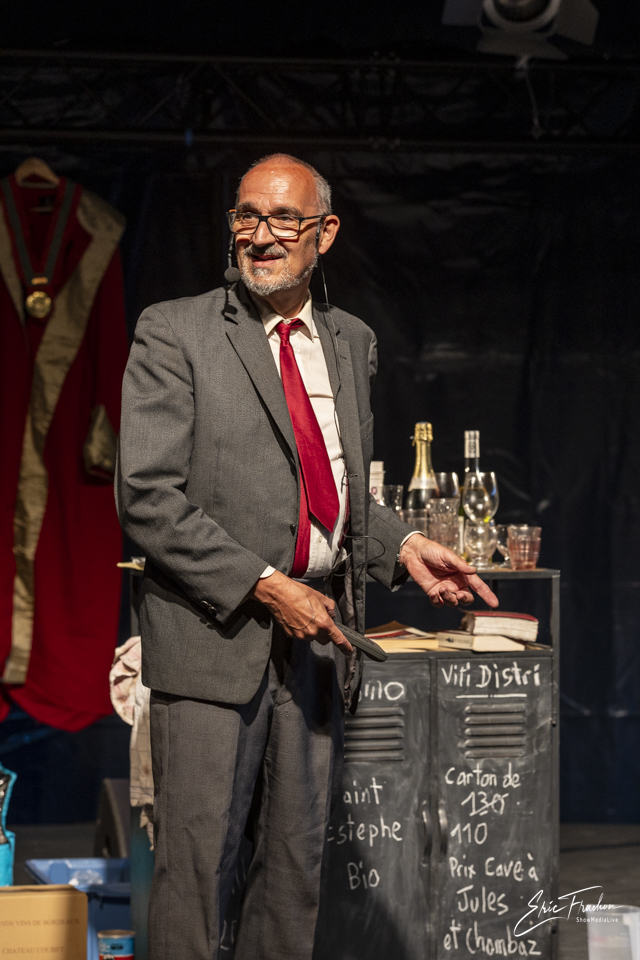 Mr Patrick un humoriste légèrement pompette, qui parle du bon vieux temps en présentant une dégustation de vin. Un moment de bon fou rire.