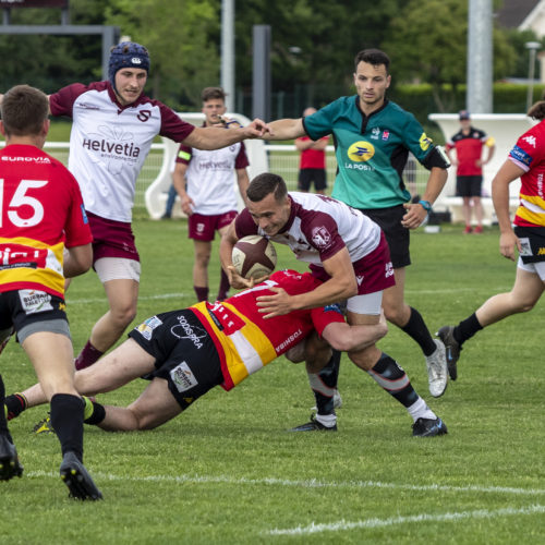 Bienvenue au complexe sportif des sables , où nous allons assister à la rencontre de Servette espoirs contre Orléans, c’est un match à élimination directe. Sous une chaleur d’été le match va se jouer sur la fatigue et la préparation. Coup d’envoi à 15:00. Ça y et on est parti avec Orléans qui donne le coup d’envoi. Début de match pour le Servette, mais la bataille est rude. Une belle entrée de match des deux équipes, nous assistons à une belle rencontre et à la 12ème minute toujours 0 à 0. 17ème minutes pénalité pour Orléans qui va tenter d’ouvrir le score. 3-0 pour Orléans. Le Servette attaque mais n’arrive pas à franchir cette ligne défensive d’Orléans. Alors que nous étions à 50 cm de la ligne de but c’est Orléans qui marque un essai à la 22ème minute. Le score est de 0-10. Le Servette marque un essai à la 28ème minute le score est de 5 à 10. Pénalité pour le Servette à la 31ème minute. Le score est de 8 à 10. 38ème minute pénalité pour Orléans, et carton jaune pour le Servette. Le score ne bouge pas après cette pénalité. Score à la mi-temps 8-10. La deuxième mi-temps vient de commencer. 45ème minute pénalité pour Orléans, qui ne passe pas. Et une nouvelle penalité à la 47eme, pour Orléans, beaucoup trop de faute de la part du Servette. Le score est de 8-13. 50ème minute une échappée d’Orléans et un essai à la clef qui est transformée, le score est de 8-20. Encore une fois une pénalité pour Orléans qui ne passe pas à la 54ème minute. Les fautes s’accumulent et le Servette est vraiment désemparé. Il n’arrive pas à mettre le rythme et à prendre la possession de ce ballon. Le Servette vient de reprendre du poil de la bête et vient de marquer un essai à la 61ème minute par Adrian. Essai non transformé. Le score et de 13-20. Cela annonce une belle fin de match. Il reste 10 minutes à jouer dans cette rencontre et l’orage arrive, quelque goutes commence à tomber. Voilà fin de match défaite du Servette sur le score de 13-20. La saison est fini pour l’es espoirs, mais l’aventure continue pour la première qui a gagné sur le terrain d’Orléans sur le score de 47-40. Toutes les informations sur le site du Servette rugby : https://www.servettercgeneve.ch/index.php/fr/