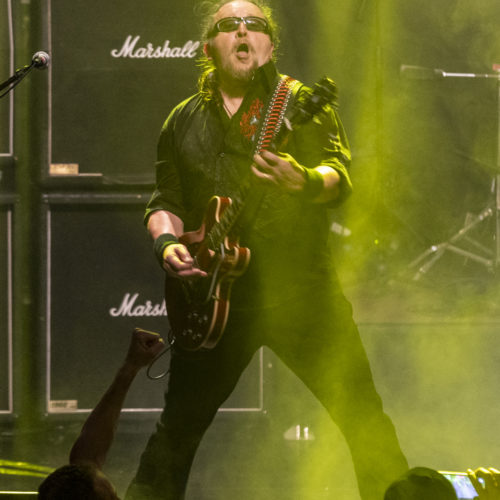 The singer has a strong and powerful voice, though one might wish for a tone slightly closer to Lemmy’s distinctive timbre to complete the tribute. That said, the performance remains convincing and gets the crowd moving.