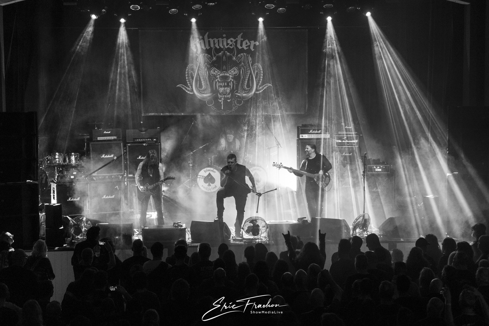 At 7:00 PM sharp, the first band of the evening quickly draws the crowd to the front of the stage: Kilmister. This Swiss tribute band pays homage to Motörhead, perfectly capturing the raw, no-compromise spirit of Lemmy and his bandmates.
