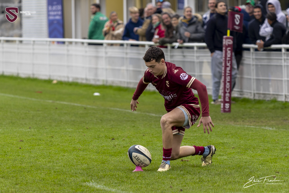 Soixante-troisième minute, un essai pour Châteauneuf avec un carton blanc pour le Servette. Essai non transformé pour Châteauneuf, le score est de 20-14
