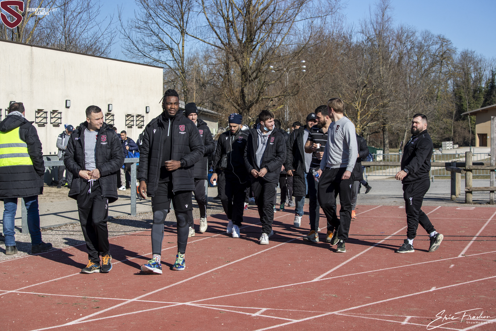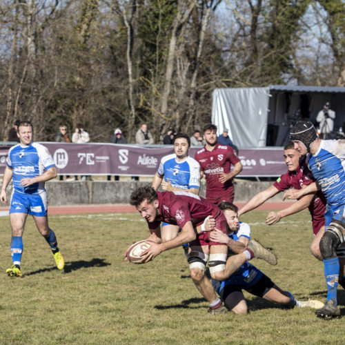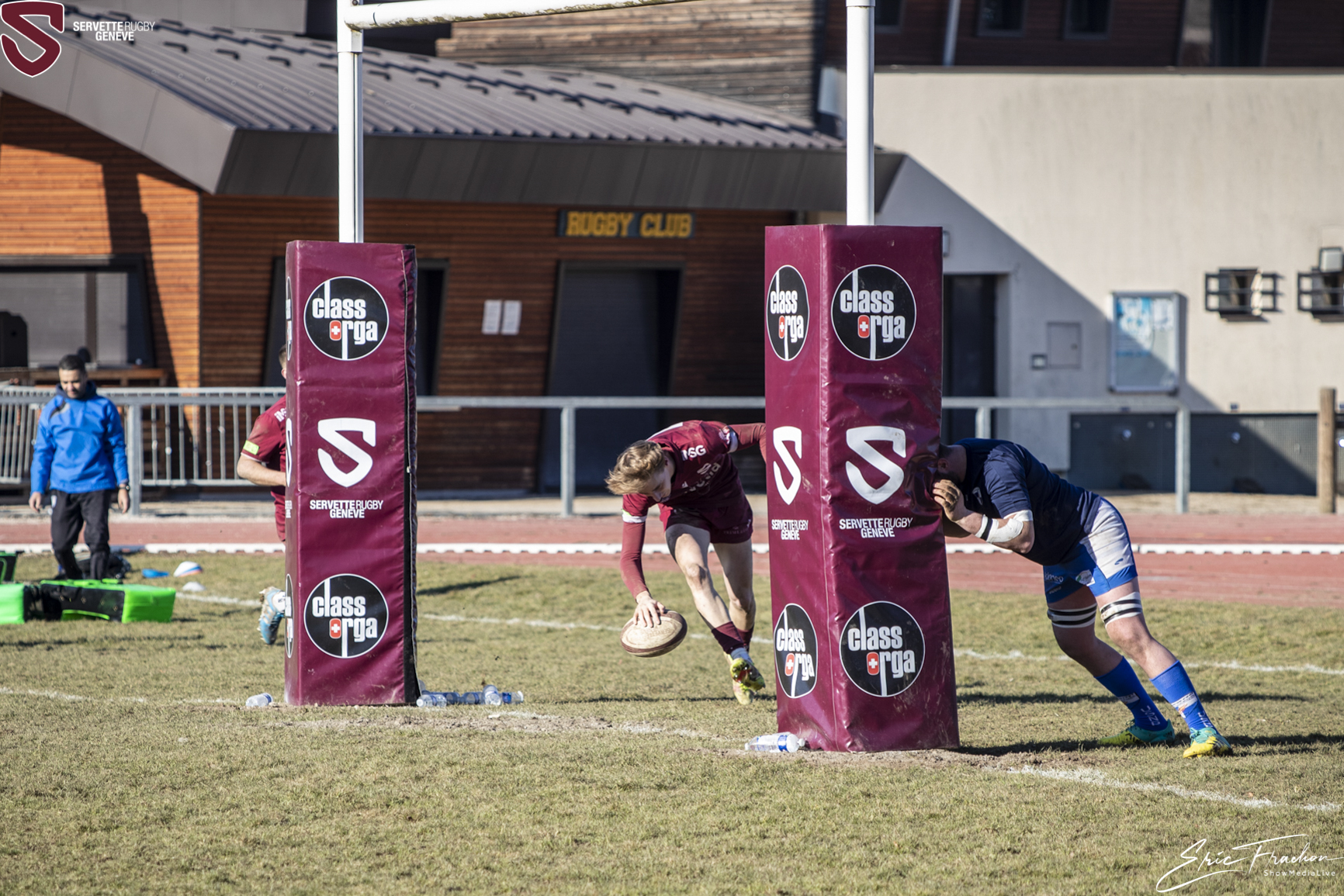 Une météo d’été avec un soleil radieux sur le stade de la Paguette à St Julien-en-Genevois que le Servette reçoit l’équipe de Nantua, au match aller le Servette avait perdu sur le score de 31 à 24. L’heure de la revanche a sonné et je pense que les espoirs au fil des matchs ont pris de l’assurance et jouent un rugby collectif, les joueurs se connaisse bien maintenant cela se voit aussi dans le jeu. Le match commence est le Servette rentre de suite dans le match, les points et les essais s’accumulent, et l’équipe de Nantua n’arrive pas à contrer les Servettiens qui ne font pas de cadeau. C’est simple le score à la mi-temps est de 27 à 09. Nous n’allons pas dire que le match était bouclé, mais il était en bonne voie. La deuxième mi-temps ne changera pas l’envie de gagner et manger l’adversaire tout cru, le Servette déroule les points et finit le match sur un score de 53 – 16. Leur deuxième top score après leur 78 contre St-Claude au mois de novembre. Prochain match toujours à domicile au stade Athenaz d’Avusy le dimanche 13 février contre le premier Annecy, cela va être un match dans un match. Toute l’actualité du club sur https://www.servettercgeneve.ch/index.php/fr/