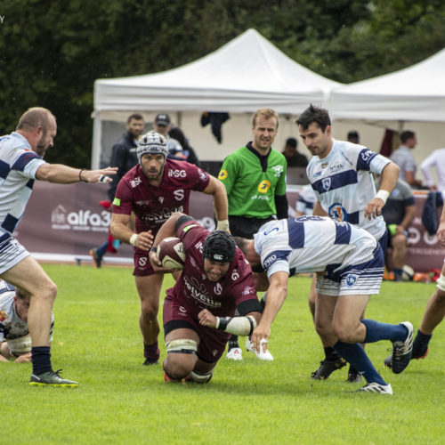 1er match à domicile pour le Servette Rugby club de Genève, qui a accueilli l’US Meyzieu Rugby pour le deuxième match de la saison en Fédéral 2. Le temps était à la pluie et à la fraicheur dimanche au stade d’Avusy, après leur victoire la semaine passée nous avons vu ce que nos espoirs ont fait en ce dimanche 19 septembre. Lorsque le match a commencé, nous voyons de suite le niveau, c’est plus dur, plus combatif, les occasions doivent être saisies et concrétisé autrement c’est l’adversaire qui va le faire c’était vraiment dur de connaître l’issue du match, en tout cas les grenats se sont bien débrouillés, mais ils n’ont gagné aucune touche, de gros progrès reste à faire de ce côté-là. Les espoirs n’ont rien lâché, et se sont imposés 36 à 25. Bravo et j’espère que vous avez montré le chemin à la première.