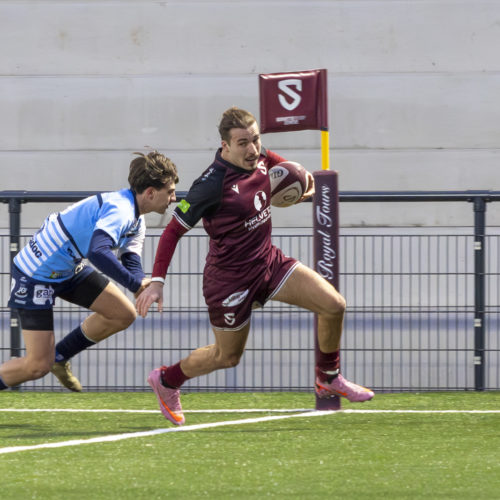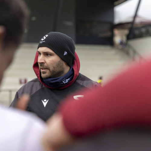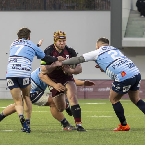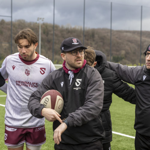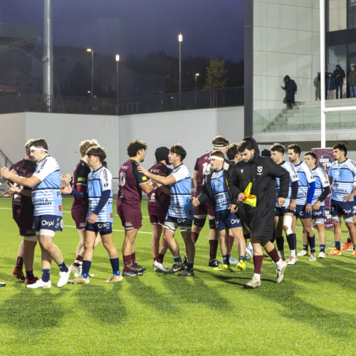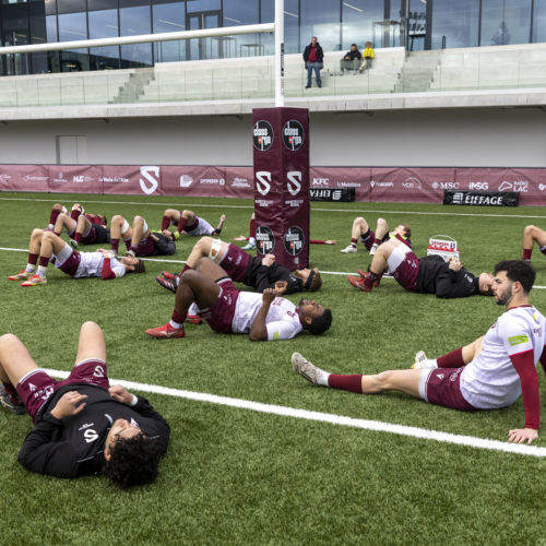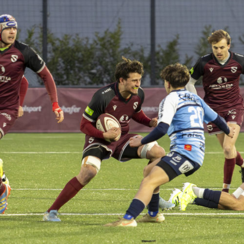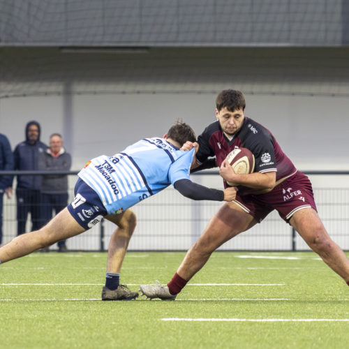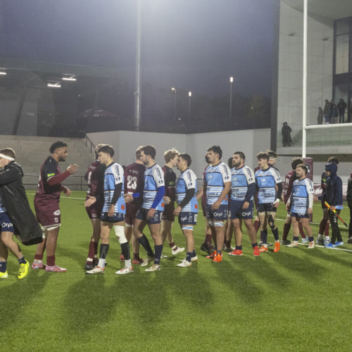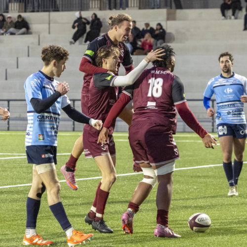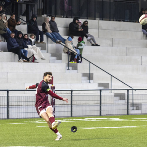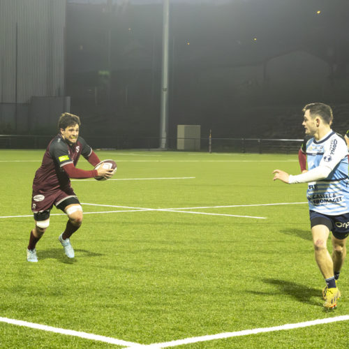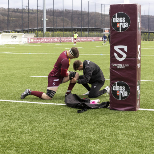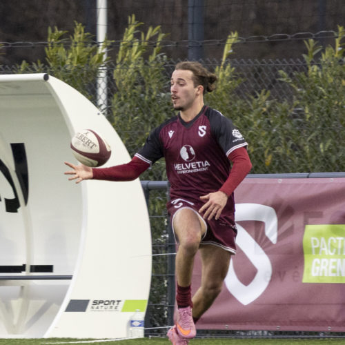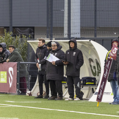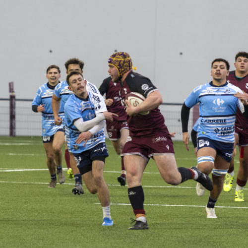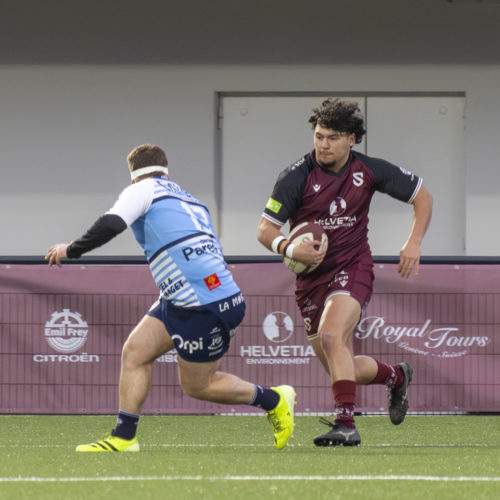 The conversions followed and the gap quickly widened. Despite a try from L. Despax (21’), the visitors were under constant pressure from the Geneva side. Two yellow cards made their task even harder in the first half.
