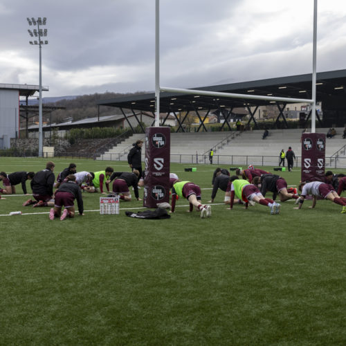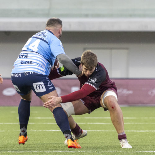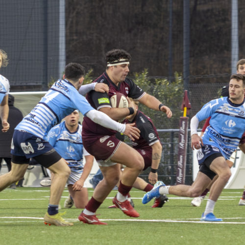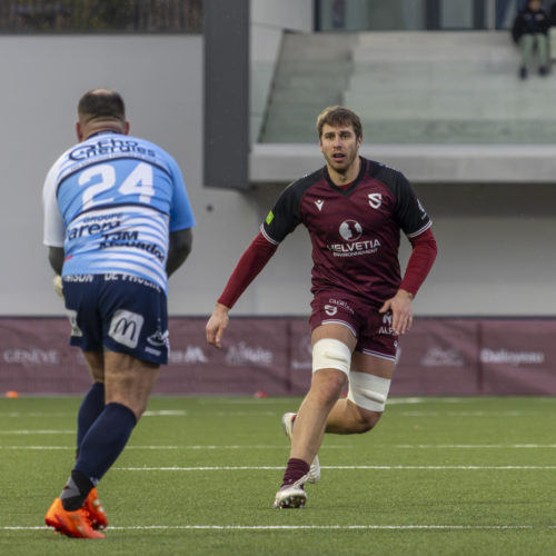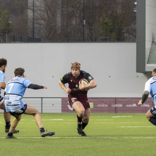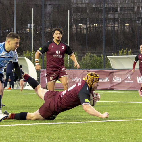 Les transformations s’enchaînent et l’écart se creuse rapidement. Malgré un essai de L. Despax (21’), les visiteurs subissent la pression constante des Genevois. Deux cartons jaunes compliquent encore leur tâche en première période.
