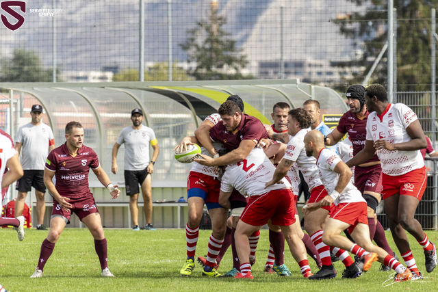 Quarantième minute, pour terminer la première partie de match, un dernier essai pour le Servette qui est transformé, score 25 – 0