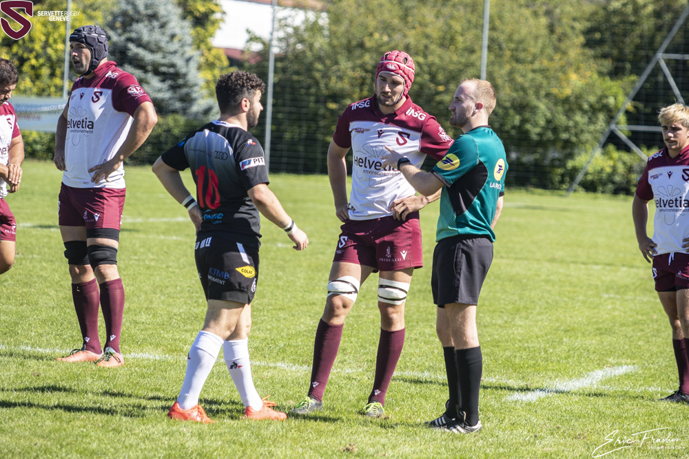 La deuxième mi-temps reprend avec un essai de pénalité pour Gennevilliers, le score est de 17 à 7. Il reste maintenant 25 minutes de jeux et le Servette obtient une pénalité qui est transformée et le score est de 20 à 7. A la 60ème minutes, une nouvelle pénalité pour Gennevilliers, qui malheureusement passe en dehors des poteaux. Le score reste inchangé pour l’instant, mais Gennevilliers vient d’obtenir une nouvelle pénalité et le score évolue de 20 à 10. A 14 minutes de la fin, le Servette marque un essai et le transforme, le score et de 27 à 10 et un carton jaune pour le numéro 23, en même temps pour Gennevilliers, la fin de match va être dur pour eux. Tout de suite après, Gennevilliers se prend encore un nouvel essai transformé et le score devient lourd avec un 34 à 10. Voilà la fin de match qui est sifflé, première victoire pour cette saison en fédérale 1. Malgré quelque erreur, l’équipe est en place et pour la suite du championnat, on est bien parti. Toutes les informations sur le site du club : https://www.servettercgeneve.ch/index.php/fr/