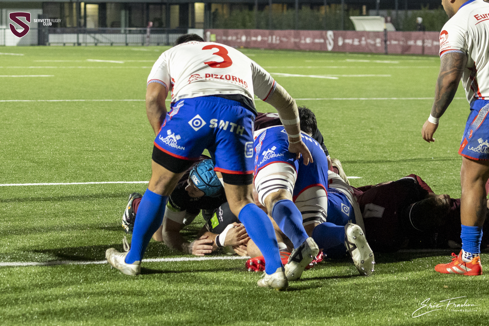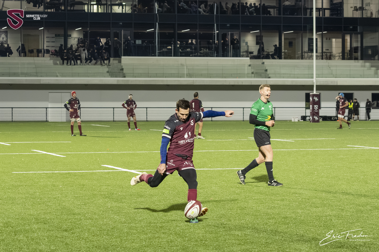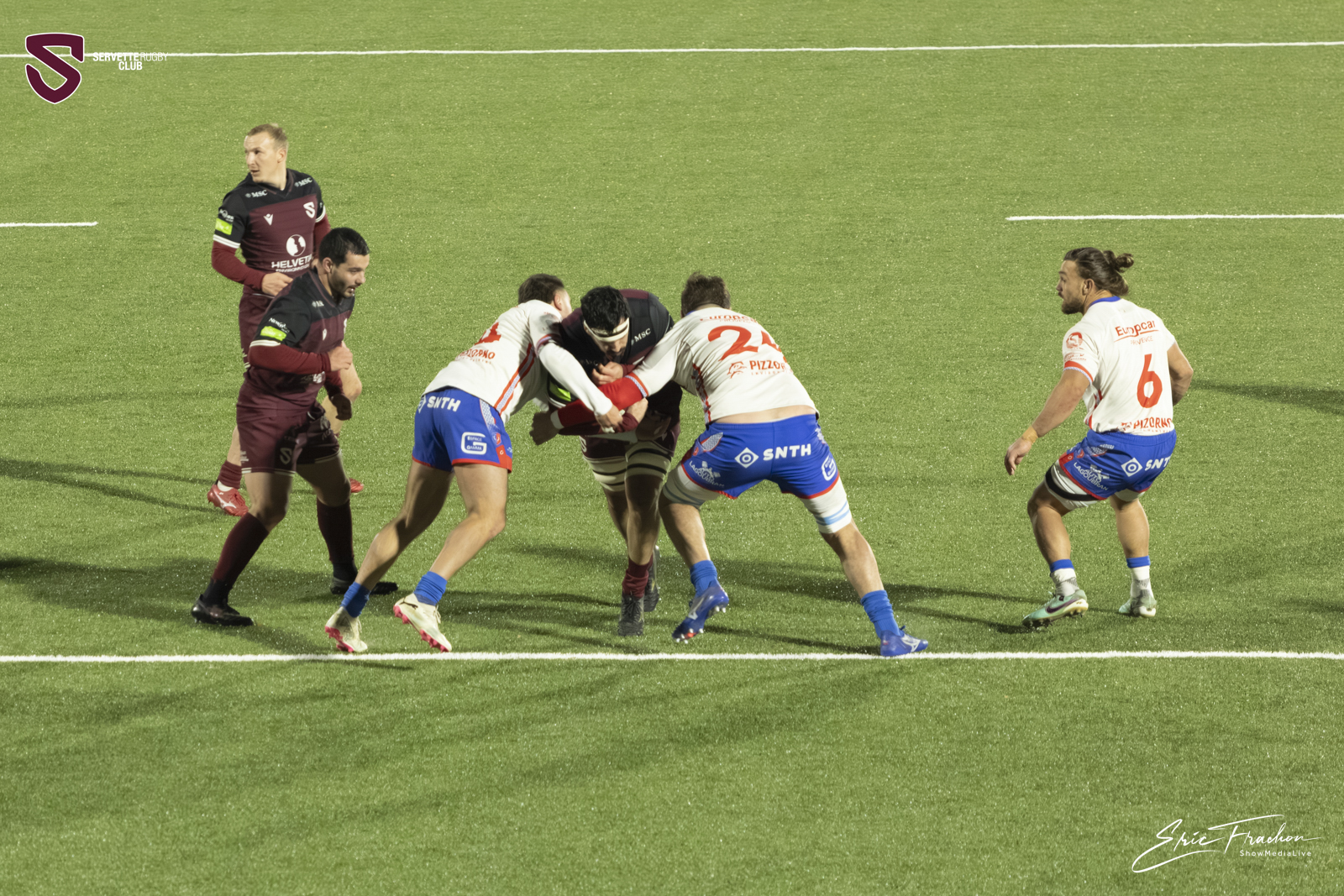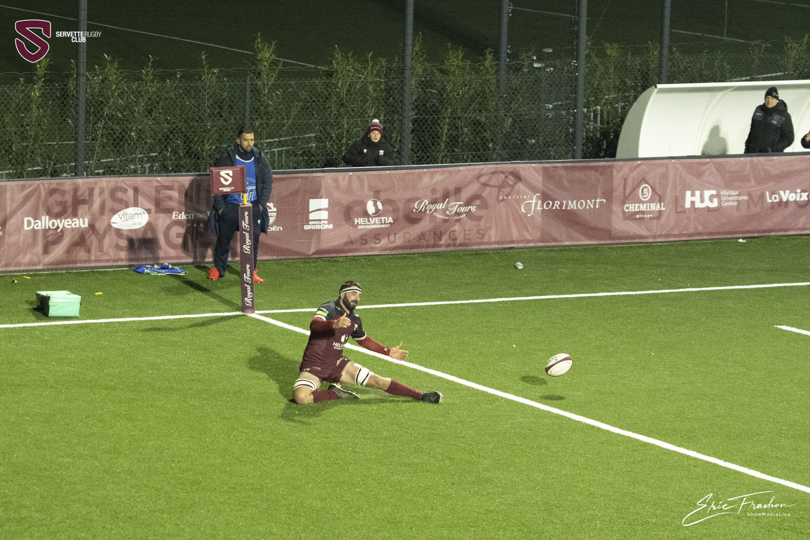 Servette struck early with an Akaoui try in the 5th minute, converted by Gonnet, before another penalty from the fly-half extended the Geneva lead to 10–0. But Seyne reacted immediately: Miot closed the gap with a penalty (13’), and Redortier scored in the corner two minutes later.