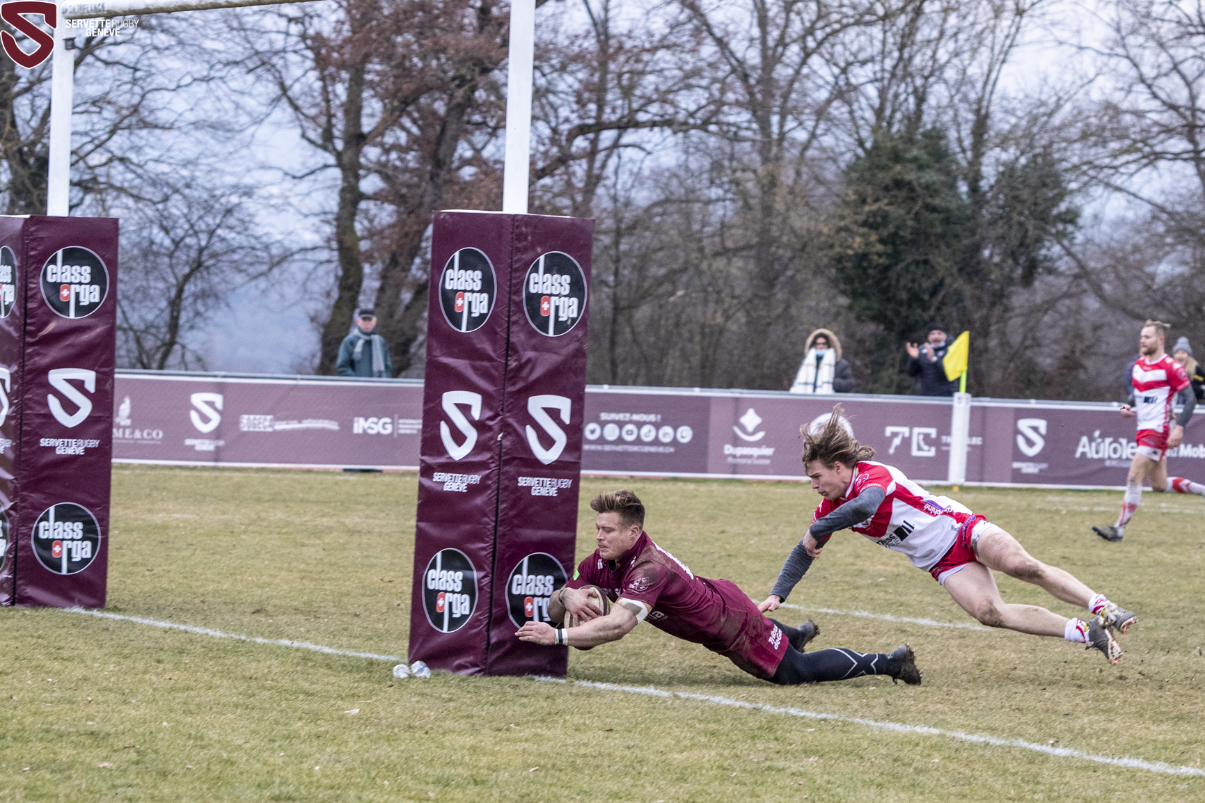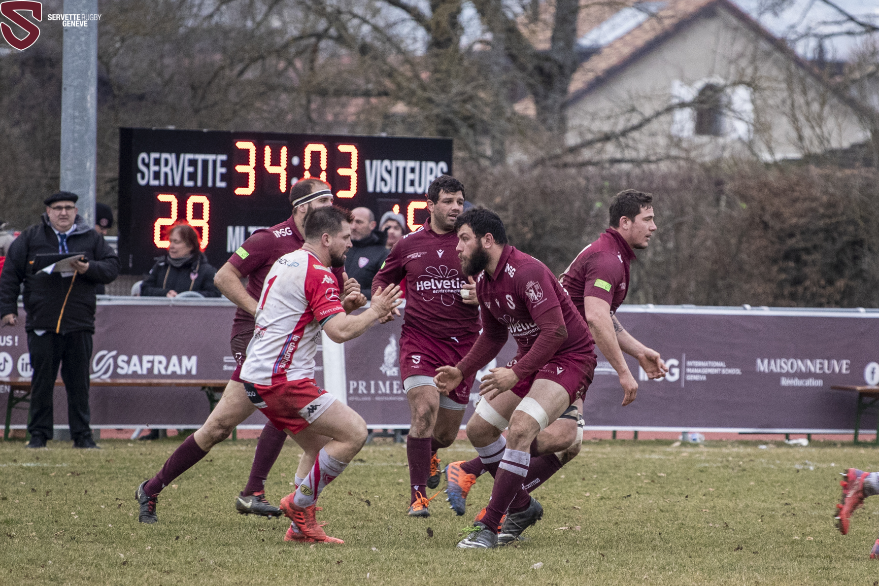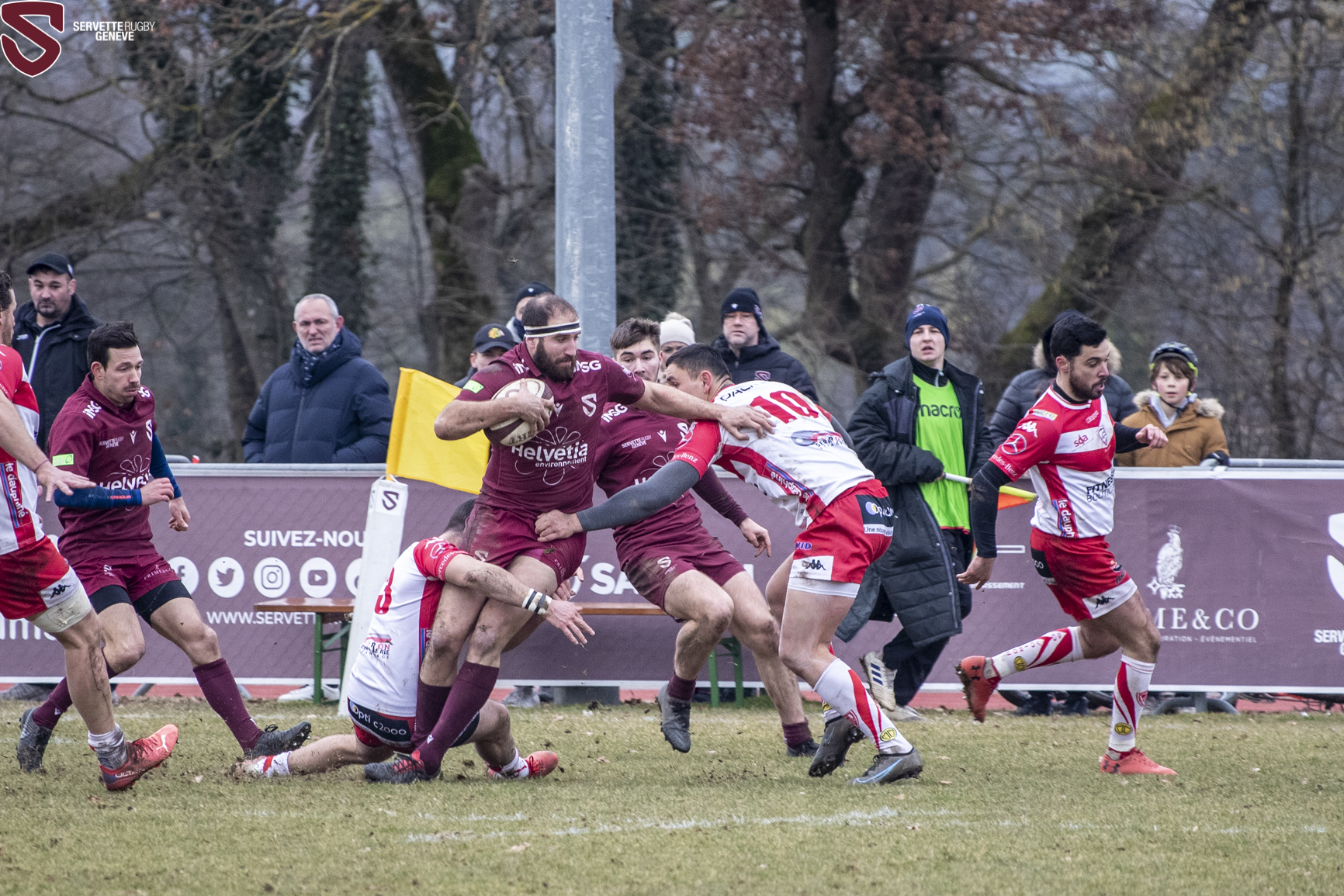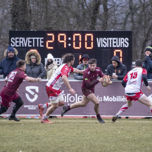 15:00 la température n’a pas augmenté, le soleil n’est toujours pas arrivé, mais les deux équipes sont là, et comme pour les espoirs le Servette avait perdu d’un malheureux petit point, donc le Servette ne va pas se laisser faire sur son terrain. Le match débute, les deux équipes ne veulent pas laisser le moindre mètre, mais c’est le Servette qui ouvre le score, cela leur à donner confiance, le Servette mène 15 à 0 après 15 minutes de jeu. Mais l’équipe en face leur rappelle qu’ils sont là et le score à la mi-temps est de 18 – 15. La seconde mi-temps est un peu plus chaude que la première mais pas par la température mais d’échauffement sur le terrain. Le score évolue aussi, dans un premier temps pour le Servette et les Voirons qui courent derrière le score, mais cette fois ci la victoire est pour le Servette 47 à 32. Le prochain match se jouera au stade de la Paguette à St Julien en Genevois contre l’équipe de Nantua, score au match aller Nantua 23 – Servette 27. Toutes les infos pour le Servette Rugby sur le site internet : https://www.servettercgeneve.ch/index.php/fr/