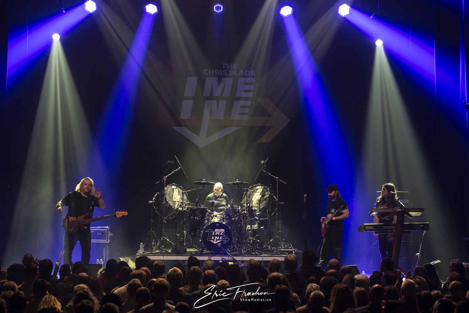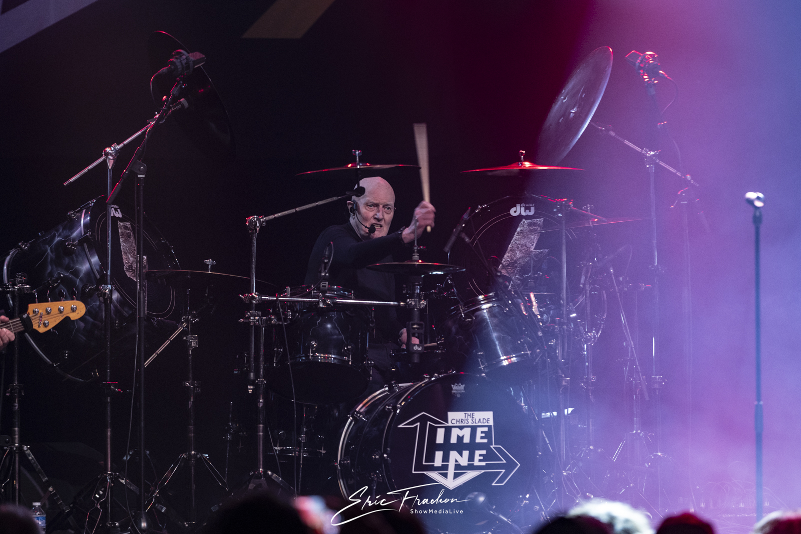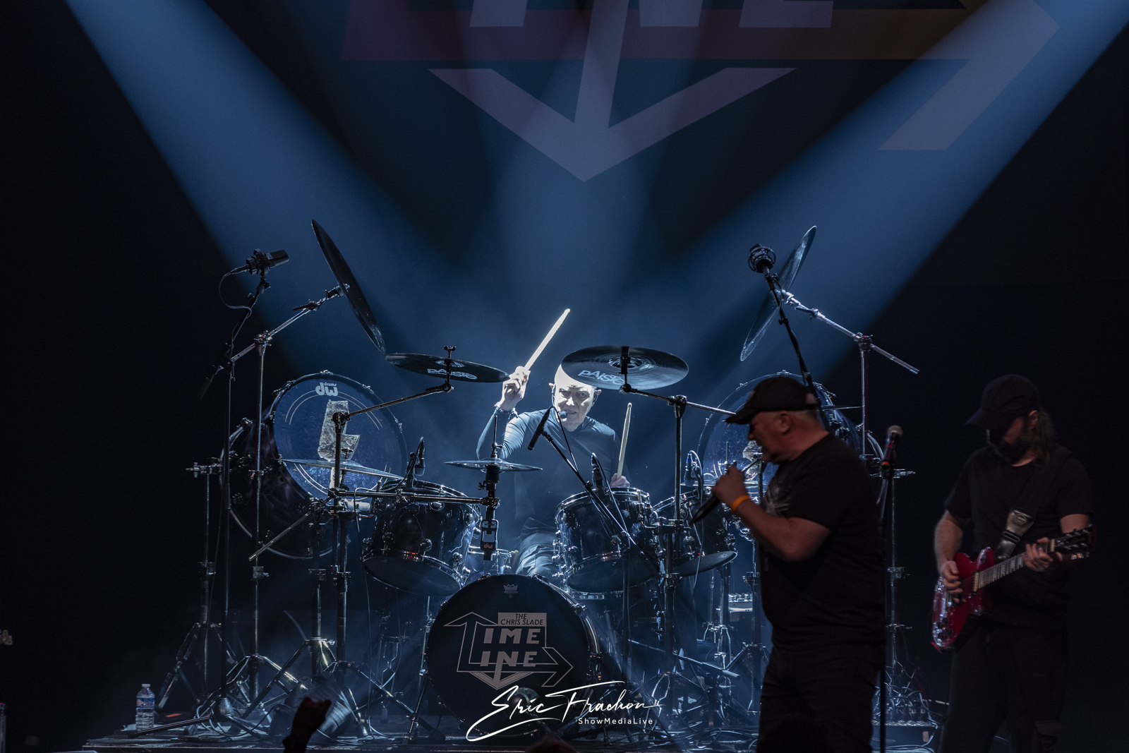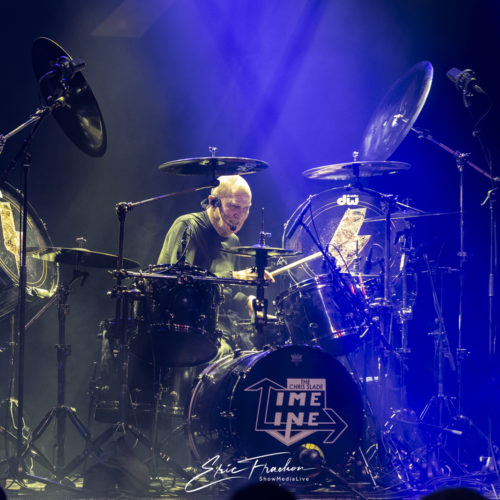 Puis est arrivé Chris Slade, accueilli par une ovation qui témoignait du respect et de l’admiration que lui porte le public. Toujours aussi affûté, le batteur gallois a déroulé un set puissant aux côtés de The Chris Slade Timeline. Le groupe a revisité plusieurs étapes de sa carrière monumentale : du hard rock aux morceaux plus atmosphériques, en passant par des passages emblématiques qui rappellent l’importance de Slade dans la musique des cinquante dernières années.