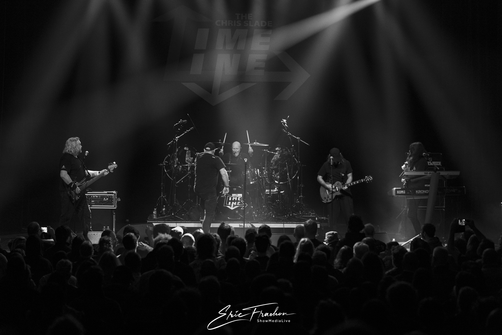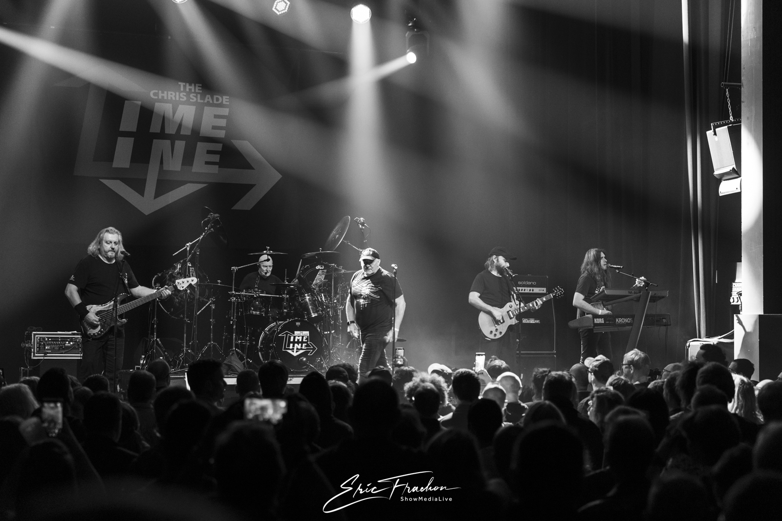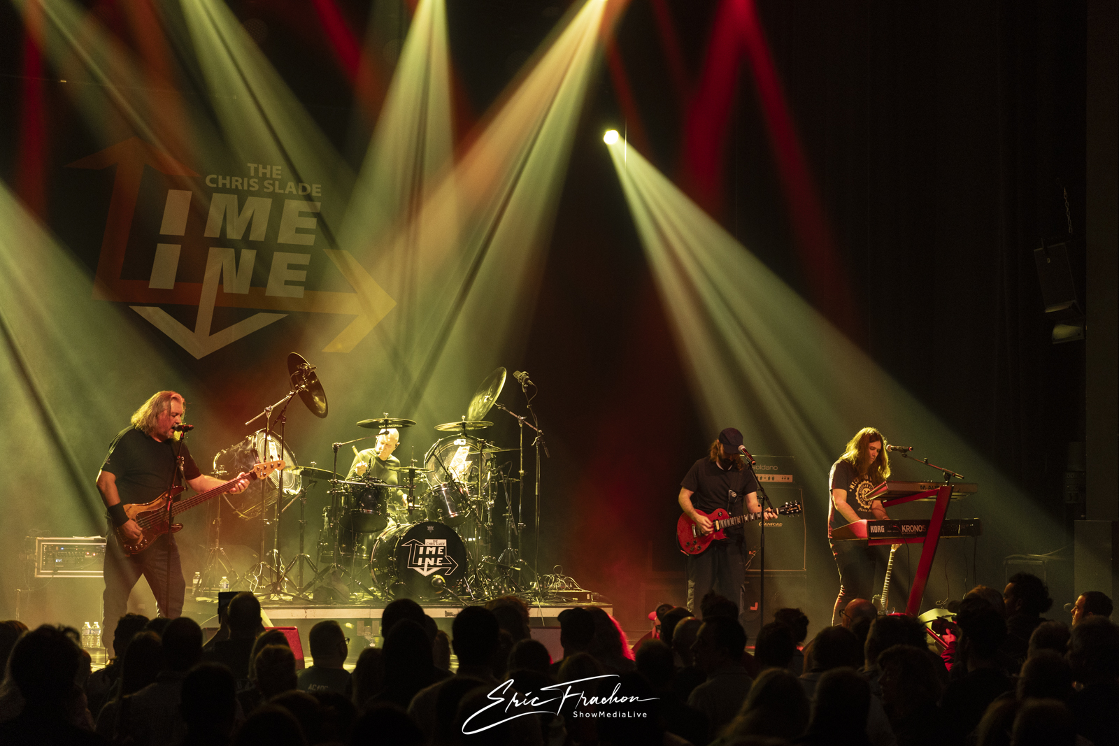 Puis est arrivé Chris Slade, accueilli par une ovation qui témoignait du respect et de l’admiration que lui porte le public. Toujours aussi affûté, le batteur gallois a déroulé un set puissant aux côtés de The Chris Slade Timeline. Le groupe a revisité plusieurs étapes de sa carrière monumentale : du hard rock aux morceaux plus atmosphériques, en passant par des passages emblématiques qui rappellent l’importance de Slade dans la musique des cinquante dernières années.