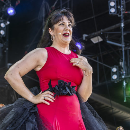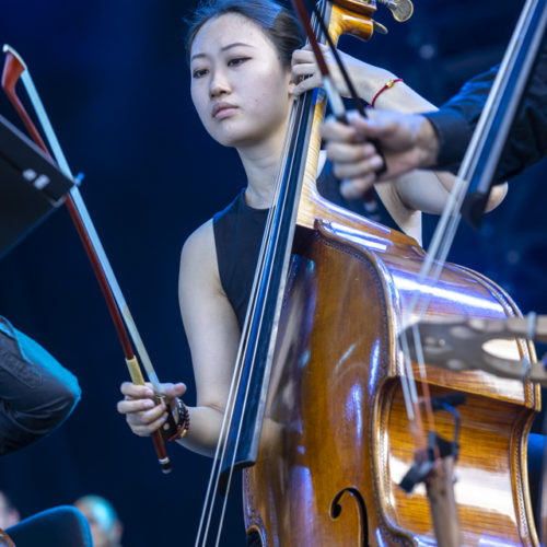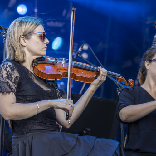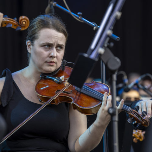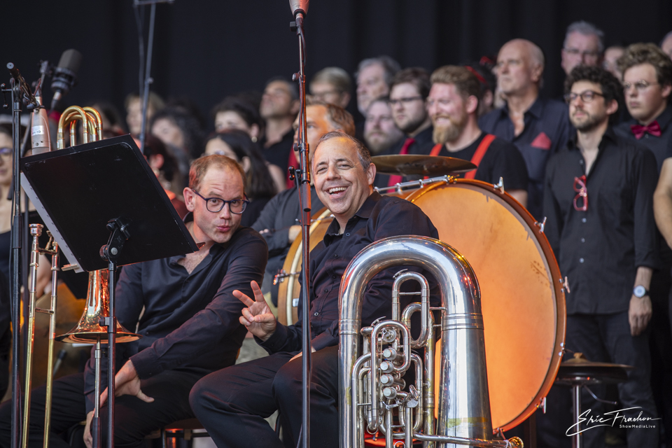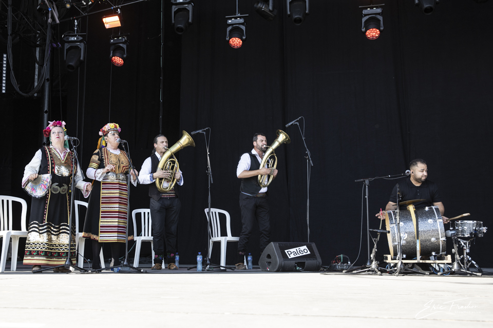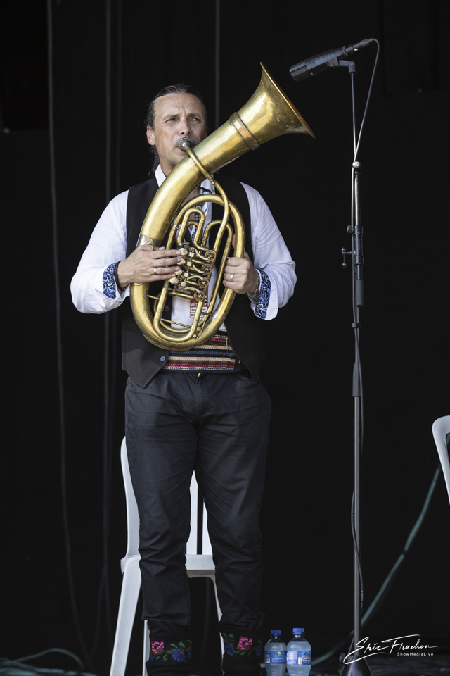 16:30  Goran Bregovic un compositeur et musicien bosniaque, qui mêle musique des Balkans et des influences gitanes, pour une ambiance festive. Il nous vient de Bosnie-Herzégovine, il passe du rock au chant religieux, dans un univers complètement fou. Avec 16 albums, depuis 1969, il a aussi joué dans beaucoup de films, de séries, c’est vraiment un artiste complet dans son pays. Il joue sur scène avec plusieurs instruments traditionnels des Balkans comme, l’accordéon, la clarinette, des cuivres, ainsi que des instruments modernes comme, la guitare électrique et la batterie, accompagné de chanteurs et choristes qui ajoute une puissance vocale. Ils sont six membres avec deux choristes. Un concert énergique et festif, où l’on découvre la richesse de la musique balkanique et gitane, qui combine musique, danse et célébration, avec des cris de joie qui résonne dans le public assurément conquis par leur prestation.