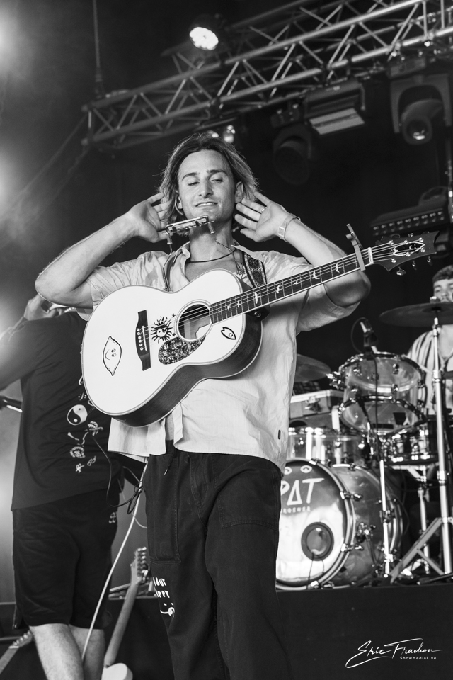 16:00  Pat Burgener est un musicien suisse bien connu pour son mélange unique de rock, pop et folk. C’est aussi un sportif de haut niveau qui excelle dans le snowboard et qui a participé à des championnats du monde. À la suite d’une blessure, il développe sa deuxième passion, la musique. Il a sorti trois albums, joué dans différents festivals, comme le Montreux Jazz Festival, le Caribana et bien d’autres. Rentre sur scène un beau et jeune artiste, style surfer australien et blond, accompagné de trois musiciens. Il commence avec un petit souci, qui s’est rapidement résolu. Il chante, joue de l’harmonica, et le public est déjà bien présent pour commencer ce premier concert. Le concert englobe une variété de styles musicaux, allant des morceaux rock entraînants aux ballades acoustiques plus douces. Avec Pat Burgener, c’est une expérience mémorable grâce à l’énergie, la diversité musicale et l’authenticité qu’il apporte sur scène.