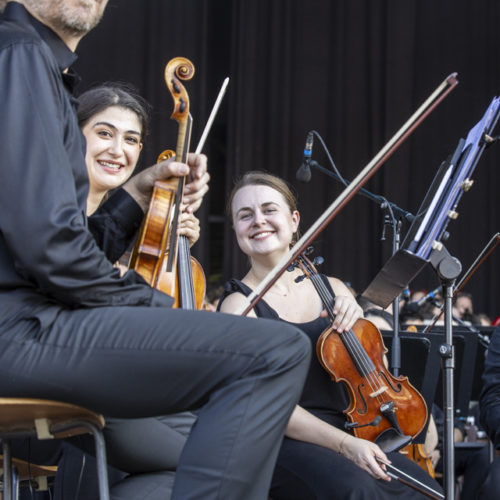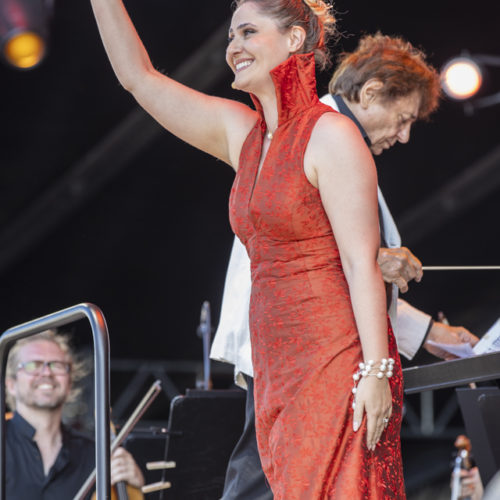 17:45  Roberto Alagna & Friends un ténor, qui a débuté en 1988 sa carrière de ténor lyrique, en remportant le concours Pavarotti au festival de Glyndebourne. Il a chanté avec des stars du monde entier, qui a repris la plupart des plus grands Opéras. Son dernier album est sorti en 2020 sous le titre ‘le chanteur’, un album de 15 titres de chansons française. A partir de janvier 2025, il sera en tournée dans toute la France avec les concerts « Hors-La-Loi » en chantant les plus belles œuvres de Jean-Felix-Lalanne. Il se produit sur scène avec le chœur du Festival et l’orchestre de Lausanne et de ses invités, la soprano Diana Lamar, la mezzo Marina Viotti, ainsi que du basse Ruben Amoretti. Roberto Alagna nous enchante de sa voix puissante et maîtrisée, mais aussi par son expressivité qui ému le public. Malgré l’heure, beaucoup de monde devant la scène qui sont venu apprécier ce merveilleux moment.
