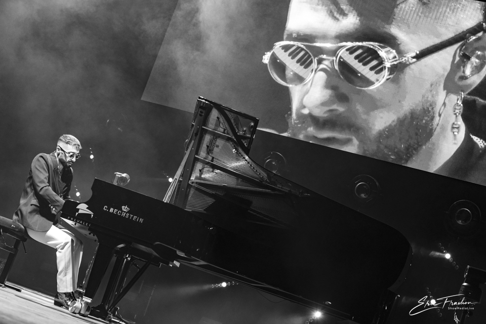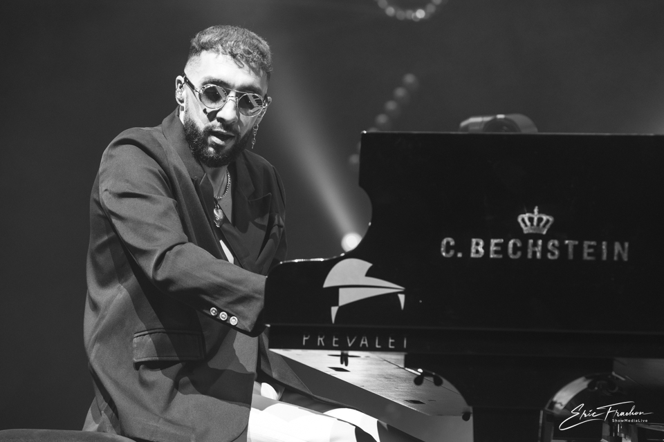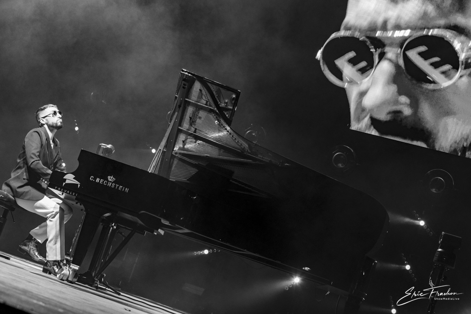 22:00  Sofiane Pamart de son surnom Piano King est un artiste français. Pianiste de renom, il obtient à 23 ans, la médaille d’or du conservatoire. Il a fait des tournées en France, aux USA avec sa première tournée en 2022. Il a enchaîné en 2023 avec le Mexique, Pérou et bien d’autres pays. Il a sorti 4 albums, le dernier en 2023 intitulé ‘Noche’. En 2024, il sort un EP avec la collaboration de Charles Leclerc ave 4 titres. En tout cas, nous sommes heureux de le voir ce soir sur la scène Véga. Le pianiste joue à la mode un peu techno accompagné d’un batteur. Le public écoute avec attention et ravi de ce concert musical.