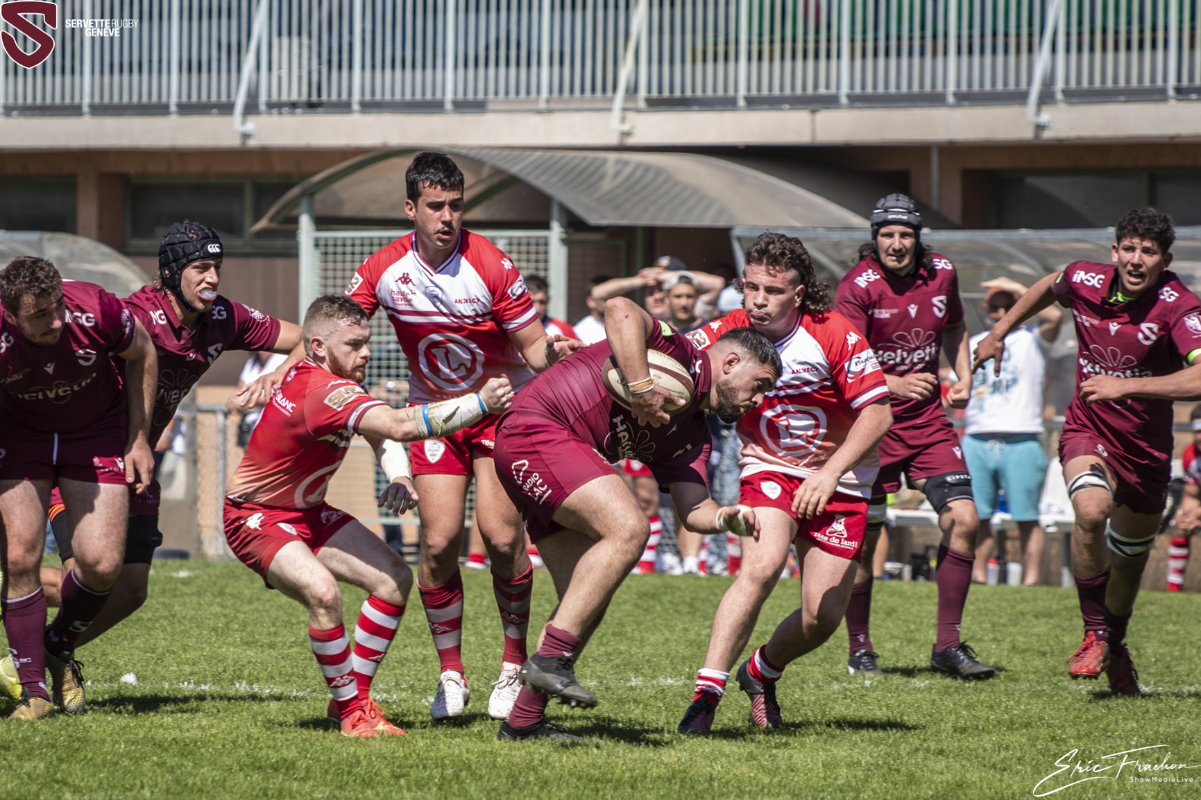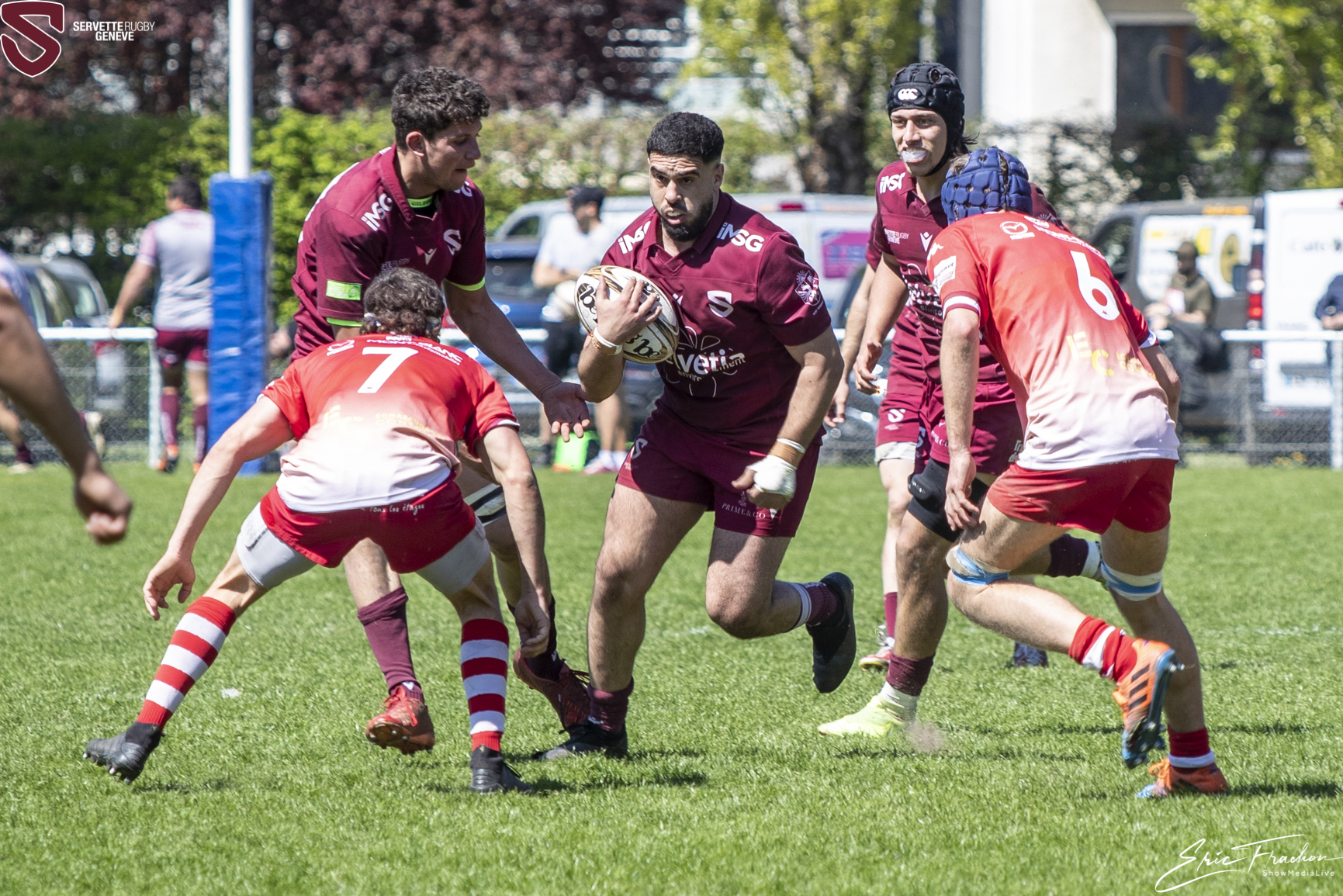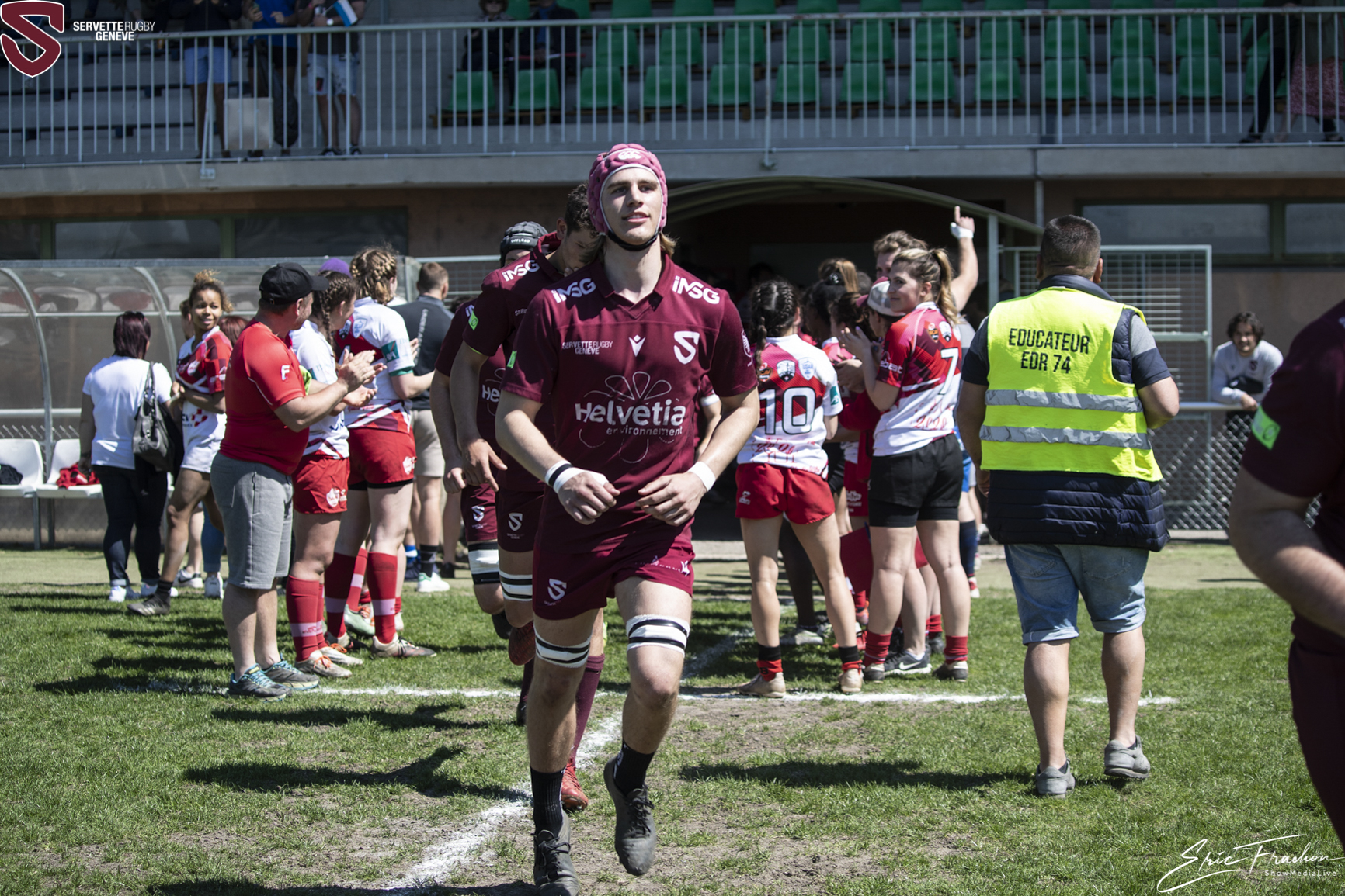 parti en tout cas, il y a de l’attaque des deux cotés mais le Servette domine ce début de match. 14ème minute un essai d’Annecy qui ouvre le score. L’essai est transformé, le score est de 7 à 0. Pénalité pour le Servette à la 19ème minute et malheureusement raté. Essai du numéro 6 du Servette à la 21ème minute, l’essai a été transformé et le score et de 7 partout. Match très tendu dans l’emblème, si le Servette gagne ils peuvent passer premier. A la 30ème minute une pénalité loupée pour Annecy, le score ne bouge pas un essai à la 38ème minute pour Annecy l’essai qui n’est pas transformé, le score et de 12 à 7 à la mi-temps. La deuxième mi-temps reprend avec de suite une pénalité pour Annecy. Le score ne bouge pas. Ce n’est pas une journée pour les butteurs aux pieds. Carton jaune pour le Servette à la 45ème minute un essai à la 51éme minute pour Annecy, qui n’est pas transformé, le score est de 17 à 7. Un nouvel essai pour Annecy vient d’être marqué à la 59ème minute, ce qui n’est le score à 22 à 7. Essai du Servette à la 71ème minute transformé par le numéro 10. Le score est de 22 à 14, nouvel essai du Servette à la 79ème minute non transformé ce qui fait un score de 22 à 19… le Servette de quelques points mais nous avons assisté à un beau match de part et d’autre. Le Servette fini 2ème au classement. Retrouver toutes les information sur le site du Servette https://www.servettercgeneve.ch/index.php/fr/