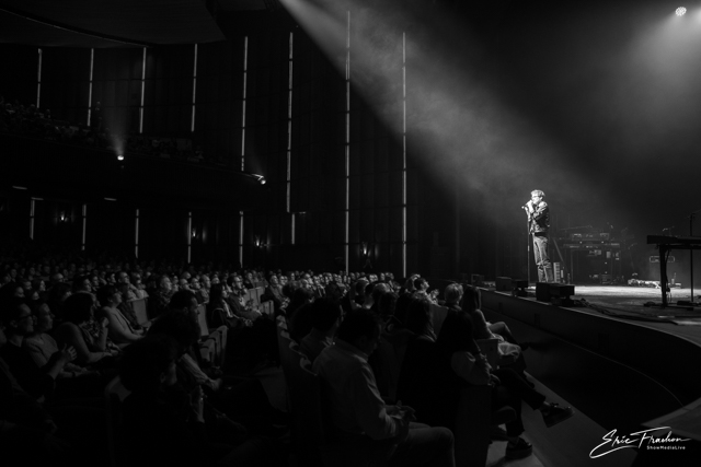 Ce soir, nous sommes au Théâtre de Beaulieu pour la nouvelle tournée de Zazie ‘Nouvel Air Tour’, avec une soirée toute particulière, celui de son anniversaire, née le 18 avril 1964. Mais avant de retrouver Zazie, Pierre Guénard qui est surtout connu pour être le chanteur de Radio Elvis, un groupe qui a reçu une victoire de la musique. En 2022, Pierre prend son envol pour commencer une carrière solo, et sort en deux ans sont premier album « je n’ai plus peur de danser » et un roman « Zéro Gloire ». Ce soir, nous allons donc découvrir un chanteur seul sur scène, avec des chansons assez rock, des écritures de parole bien maitrisées, un très bon moment, voir même un peu trop court. Mais dans cette salle complète de 1’600 personnes. Nous attendons Zazie pour lui souhaiter un joyeux anniversaire le jour de ses 60 ans, comme il se doit, et de découvrir ses nouveaux morceaux dans une ambiance intimiste. A la troisième chanson, une personne du public commence à chanter joyeux anniversaire, mais cela ne prend pas, 30 secondes après une autre personne relance le joyeux anniversaire et tout le public se lève pour reprendre en cœur. Un moment magnifique pour cette chanteuse extraordinaire. En même temps, une personne lui apporte un chapeau en forme de gâteau et elle dira le garder juste le temps d’une chanson. Heureusement nous avions les trois premières chansons à couvrir, nous avons eu de la chance de l’immortaliser avec ce beau chapeau.